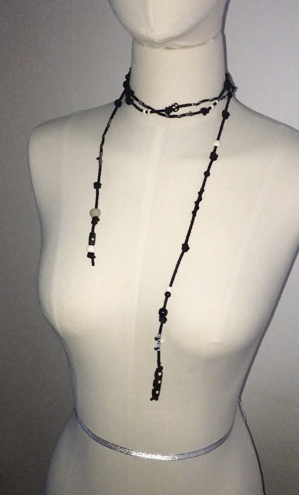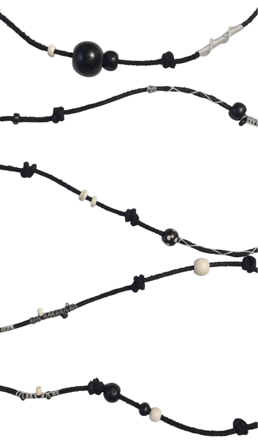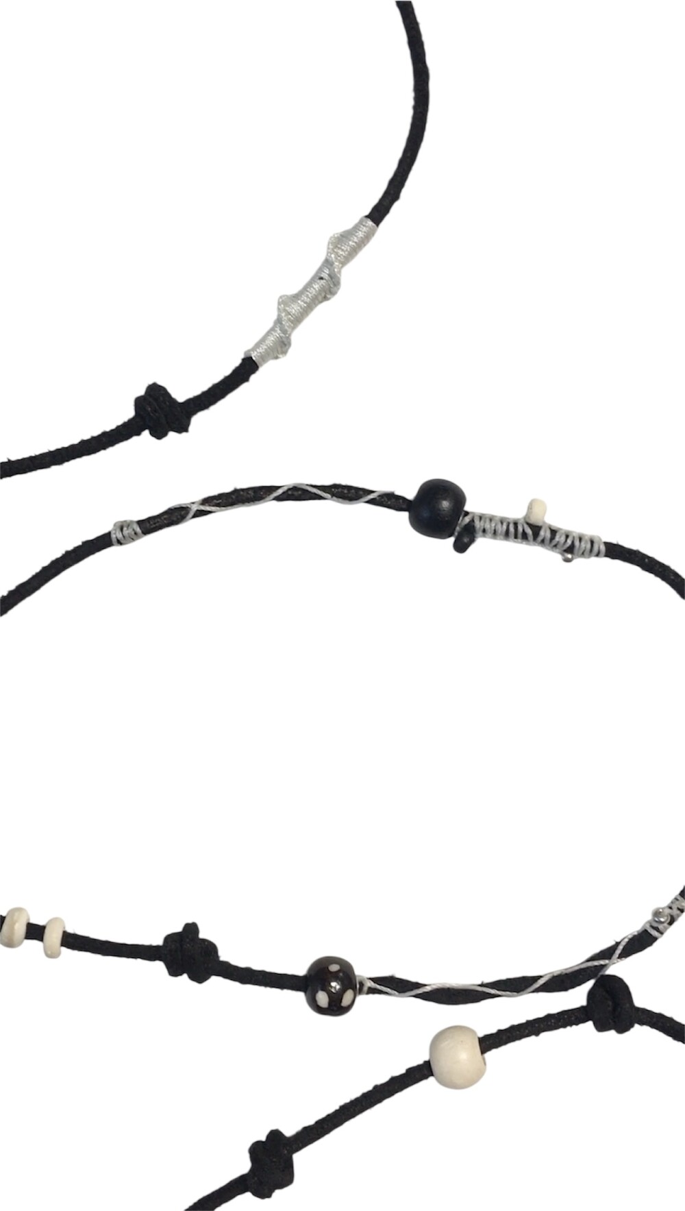 소가죽 끈 위에 매듭을 레이어링해 독특한 질감을 살린 dot multi rope예요⡱