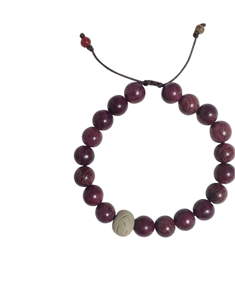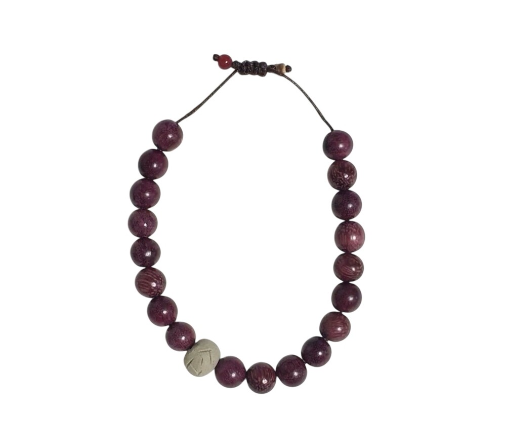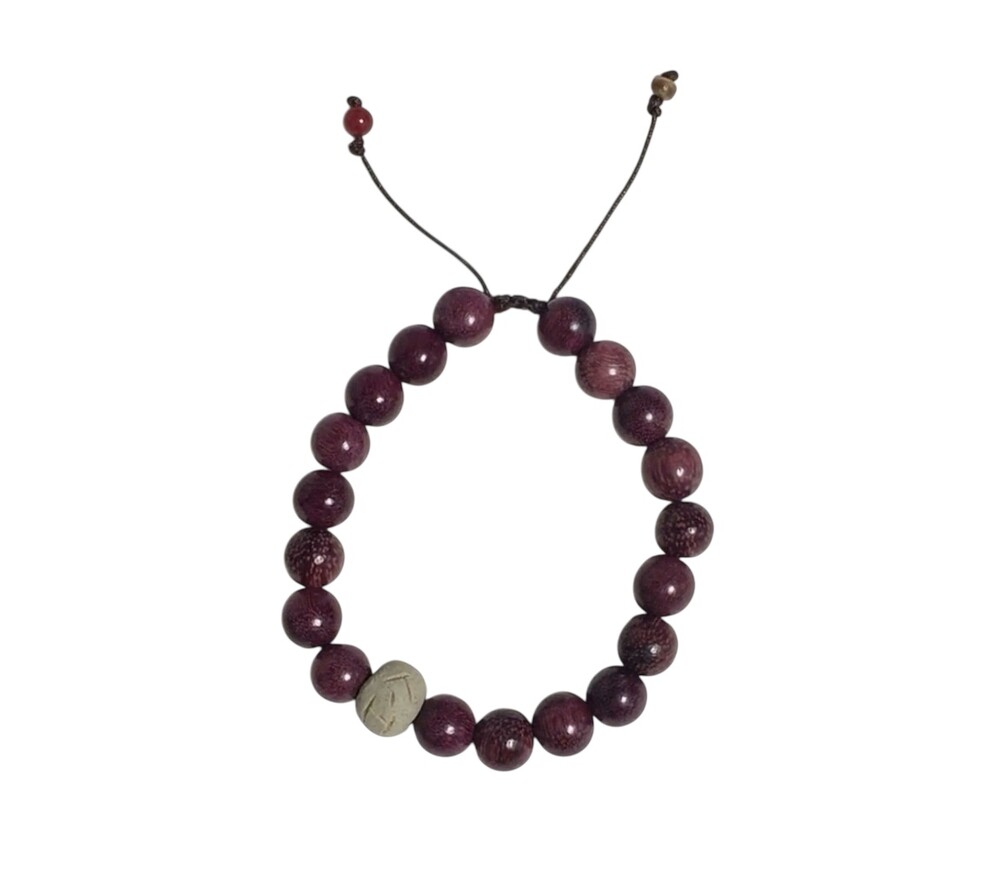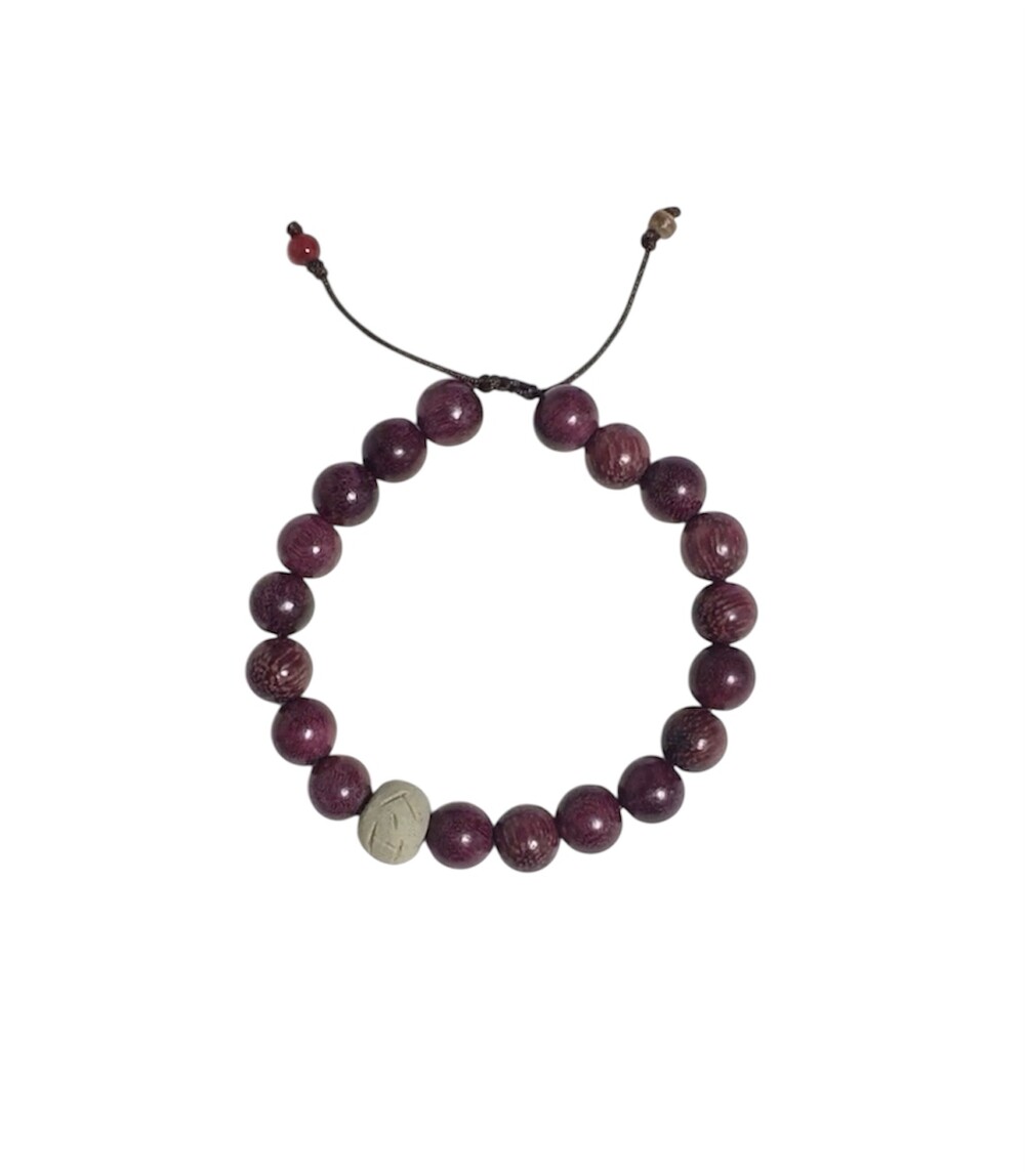 깊은 보랏빛이 매혹적인 퍼플하트 우드비즈로 완성한 팔찌예요