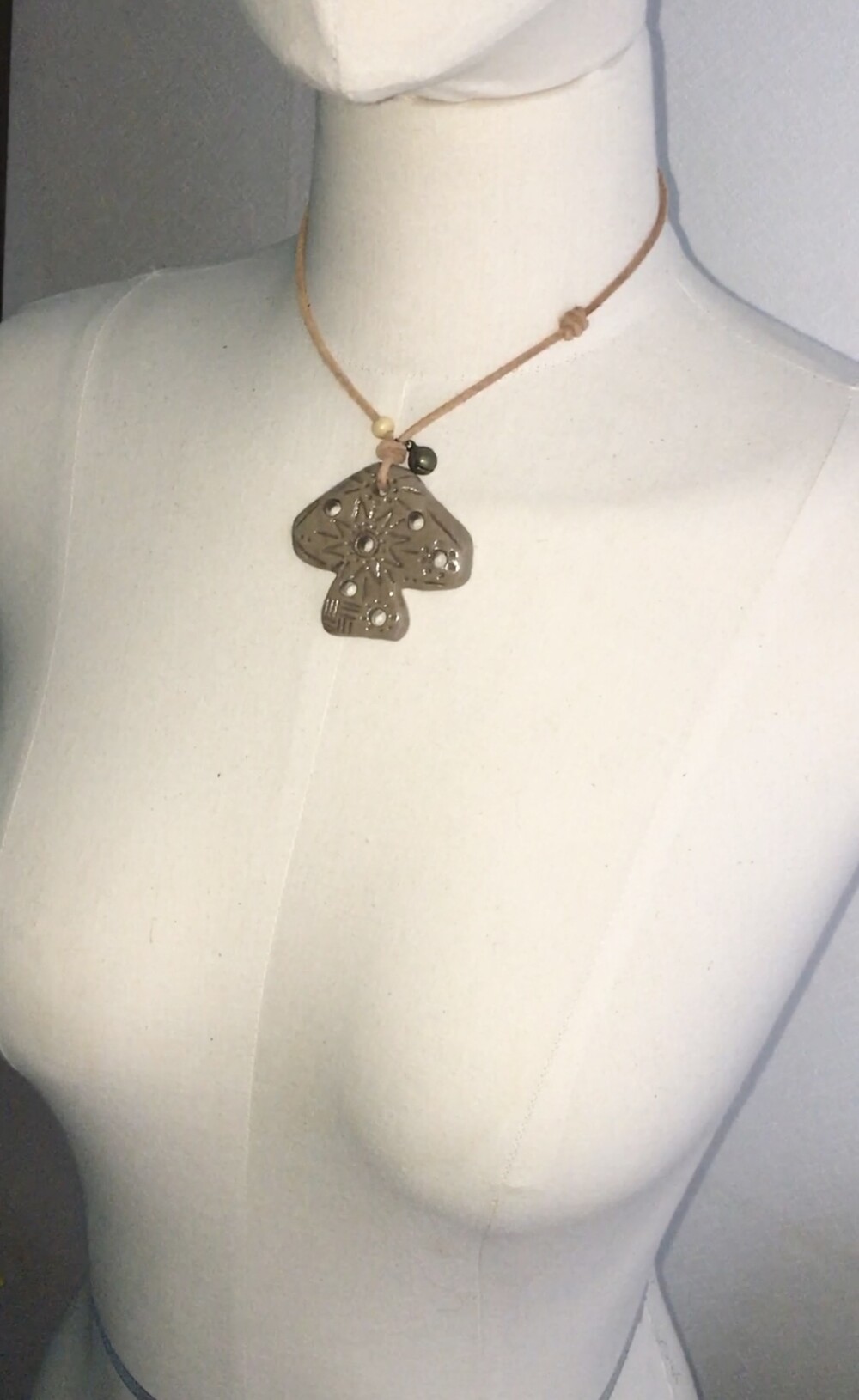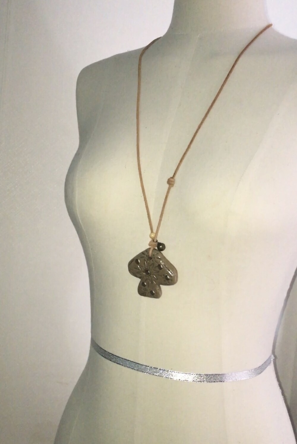 작은 흙덩이를 손끝으로 빚어, 투명한 유약을 입혀 완성한 mushroom house necklace 유광 버전이에요・. 𓋼𓍊