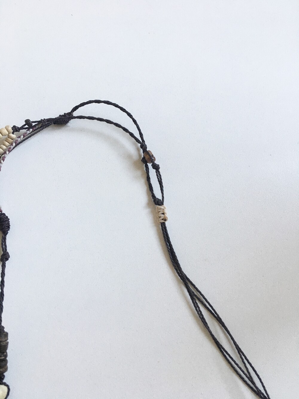 끈은 블랙 톤의 실로 매듭을 반복해 단단하게 엮었고,