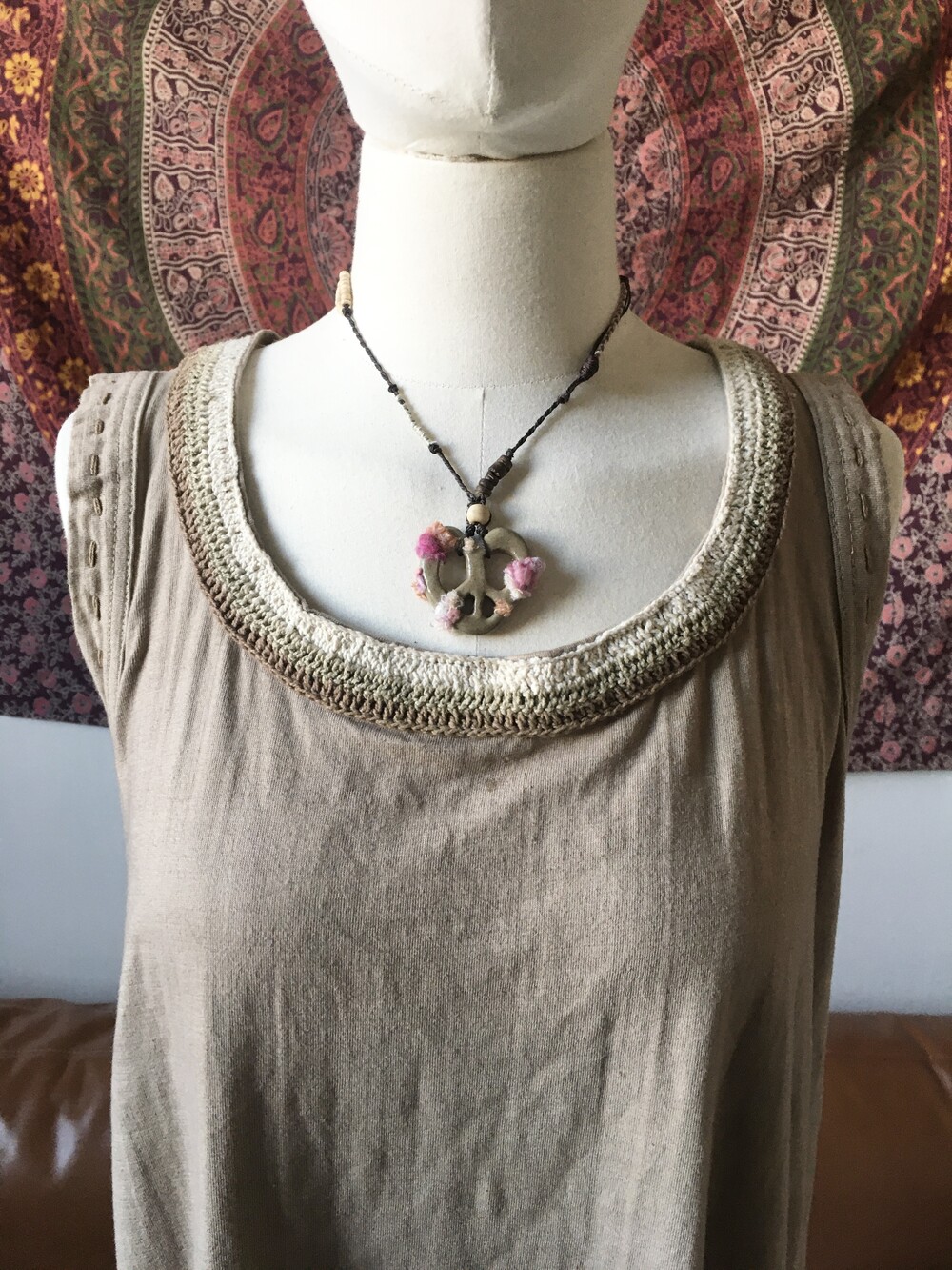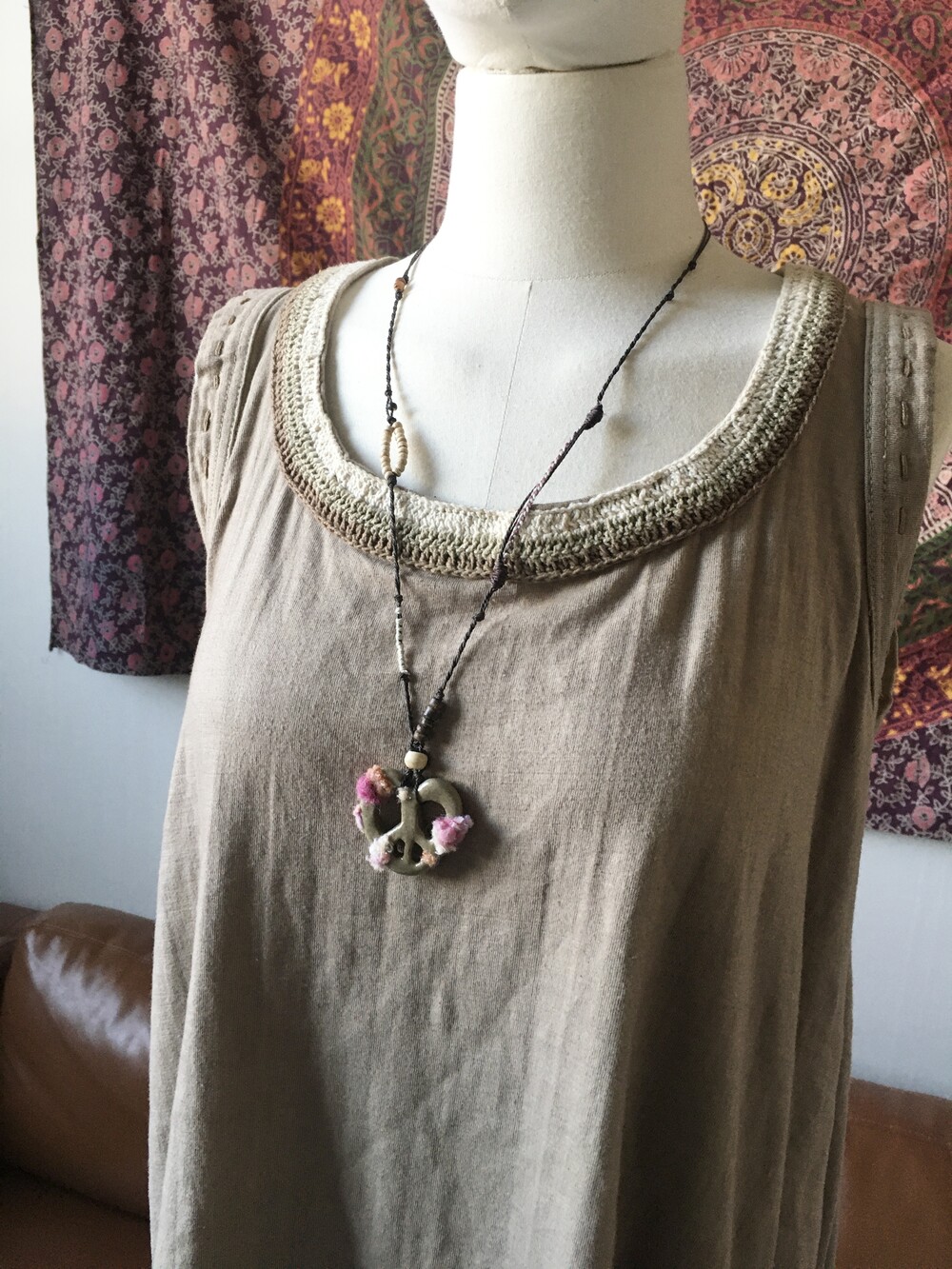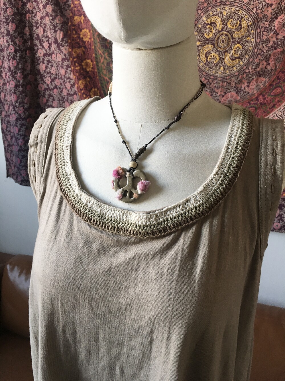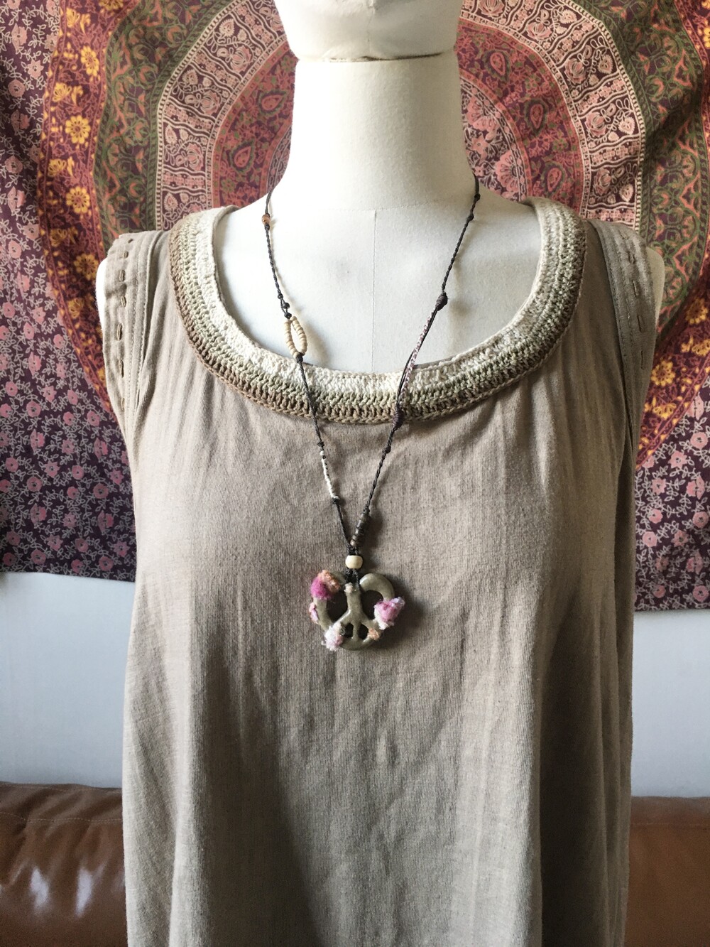 펜던트 위에는 빈티지 의류 원단을 작은 조각으로 오려 하나하나 붙여주어,