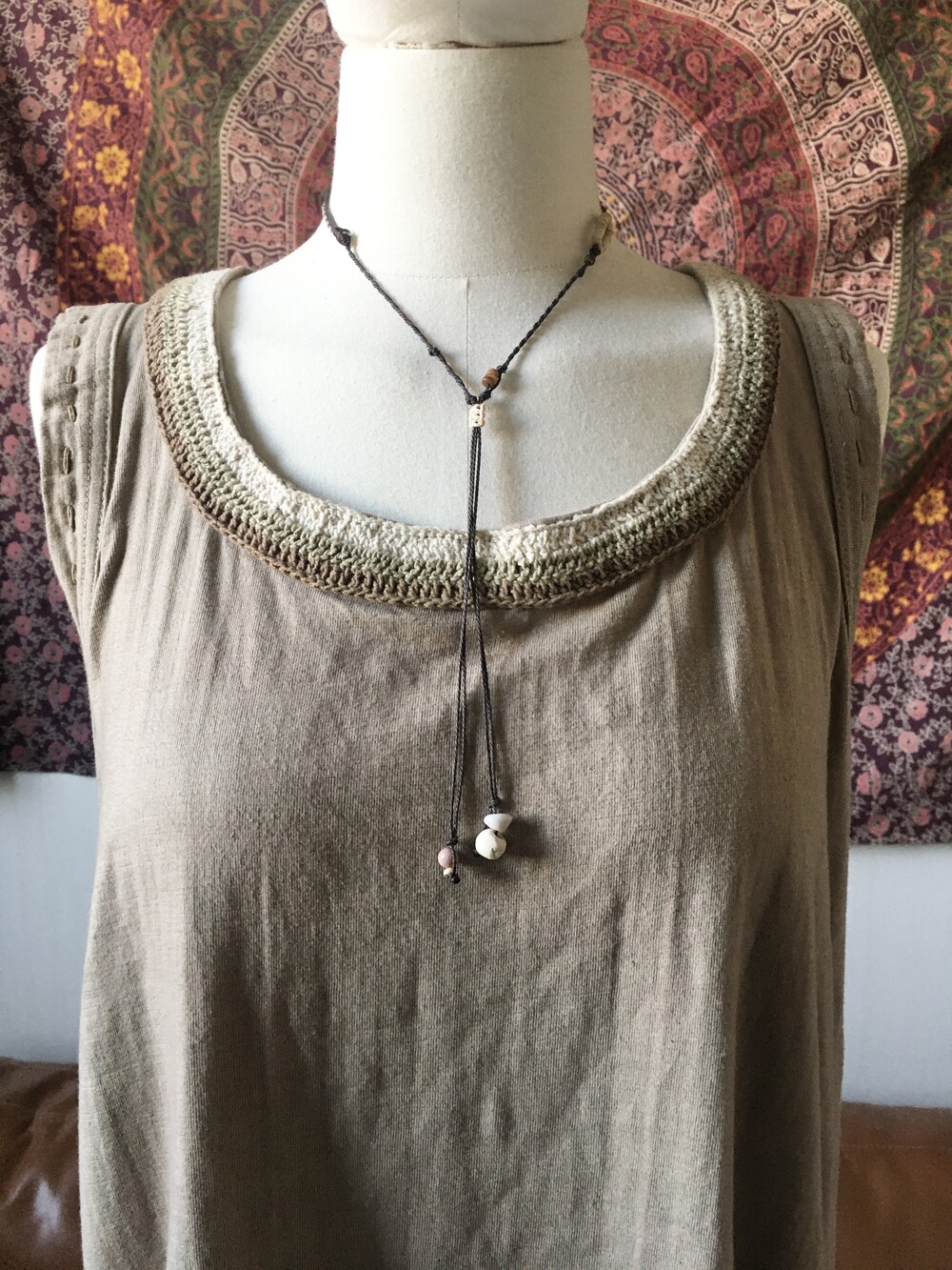 우드 비드와 빈티지한 컬러의 비즈들을 더해 전체적으로 차분한 균형을 맞췄어요.•.