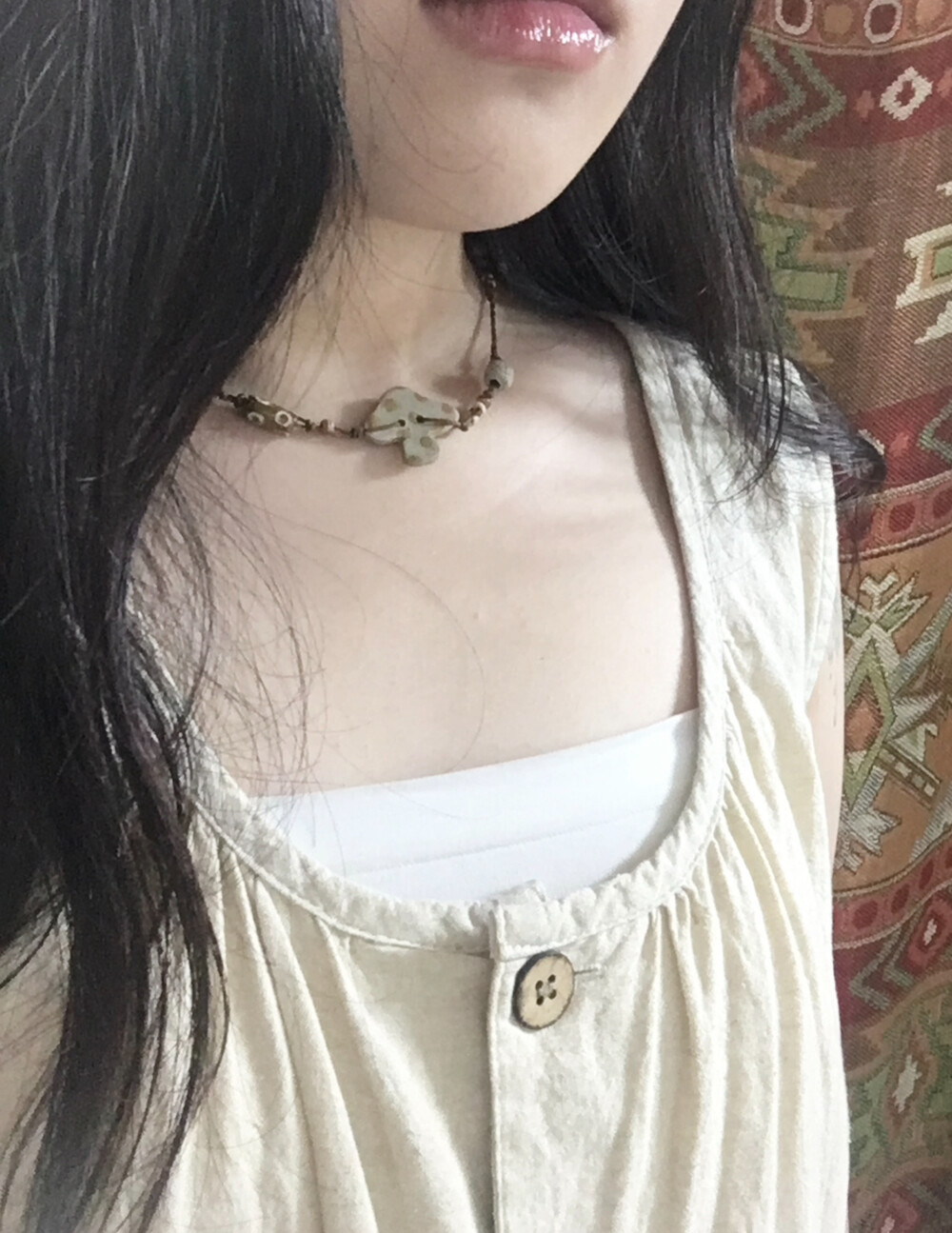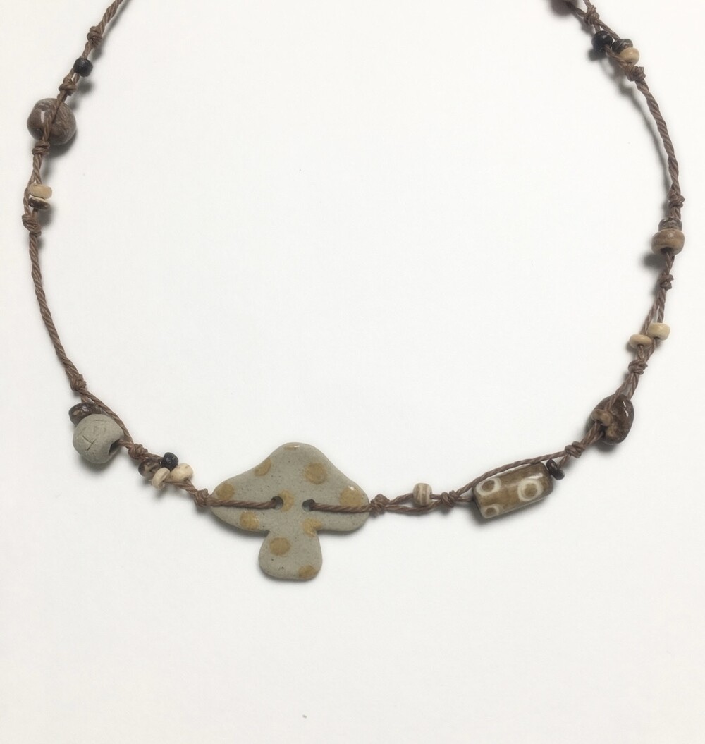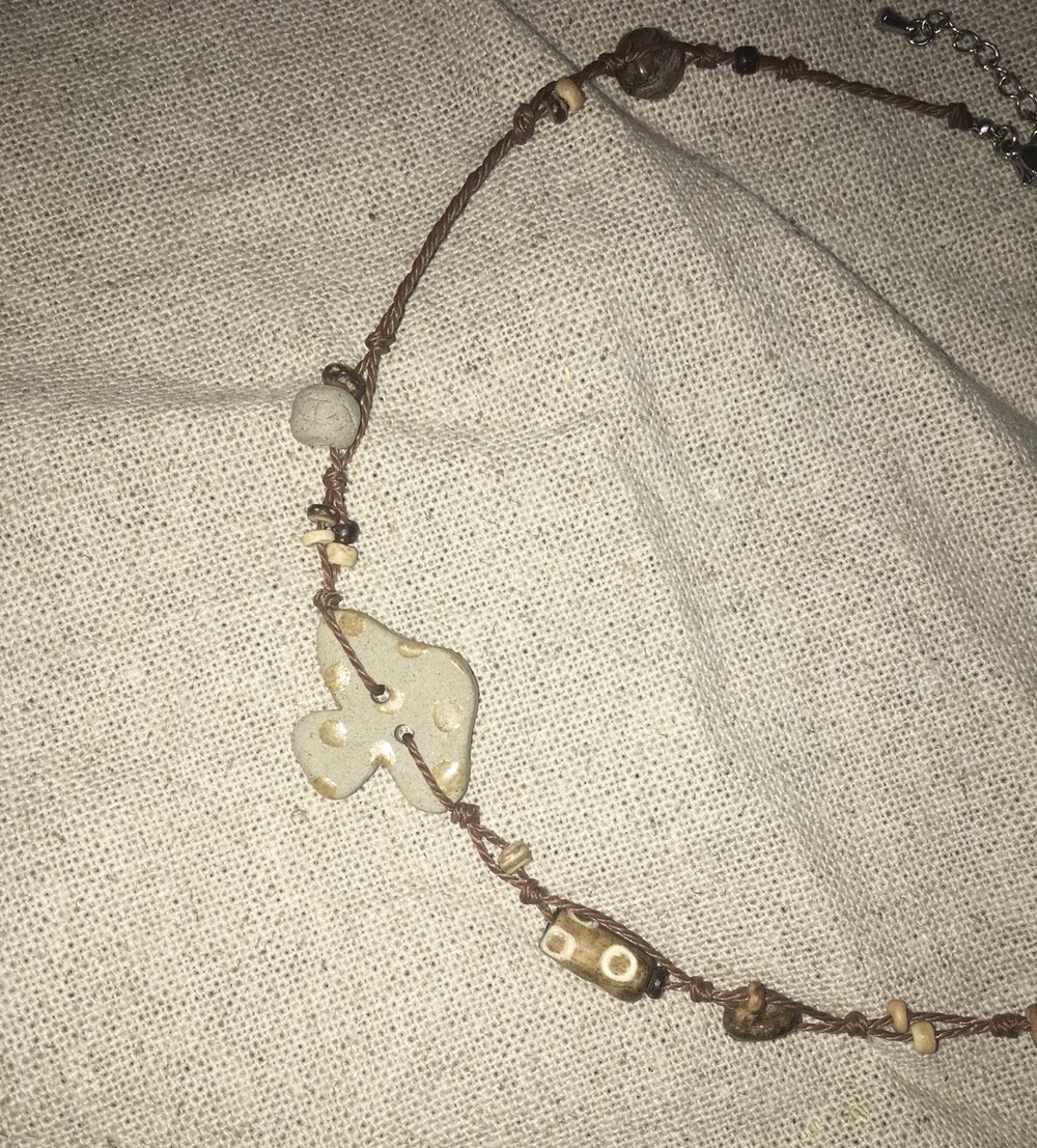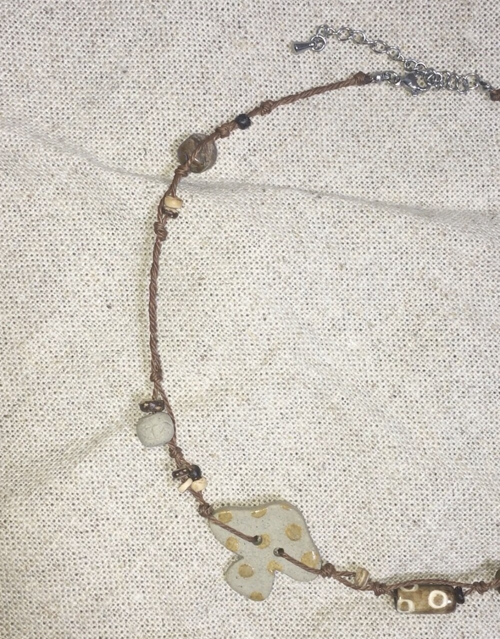 흙 본연의 색과 질감을 살려 빚은 청자토 버섯 펜던트가 중심이 되는 목걸이예요.・. 𓋼𓍊