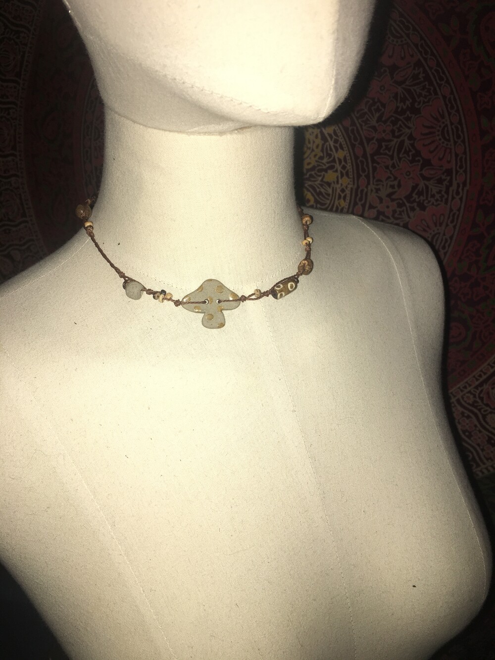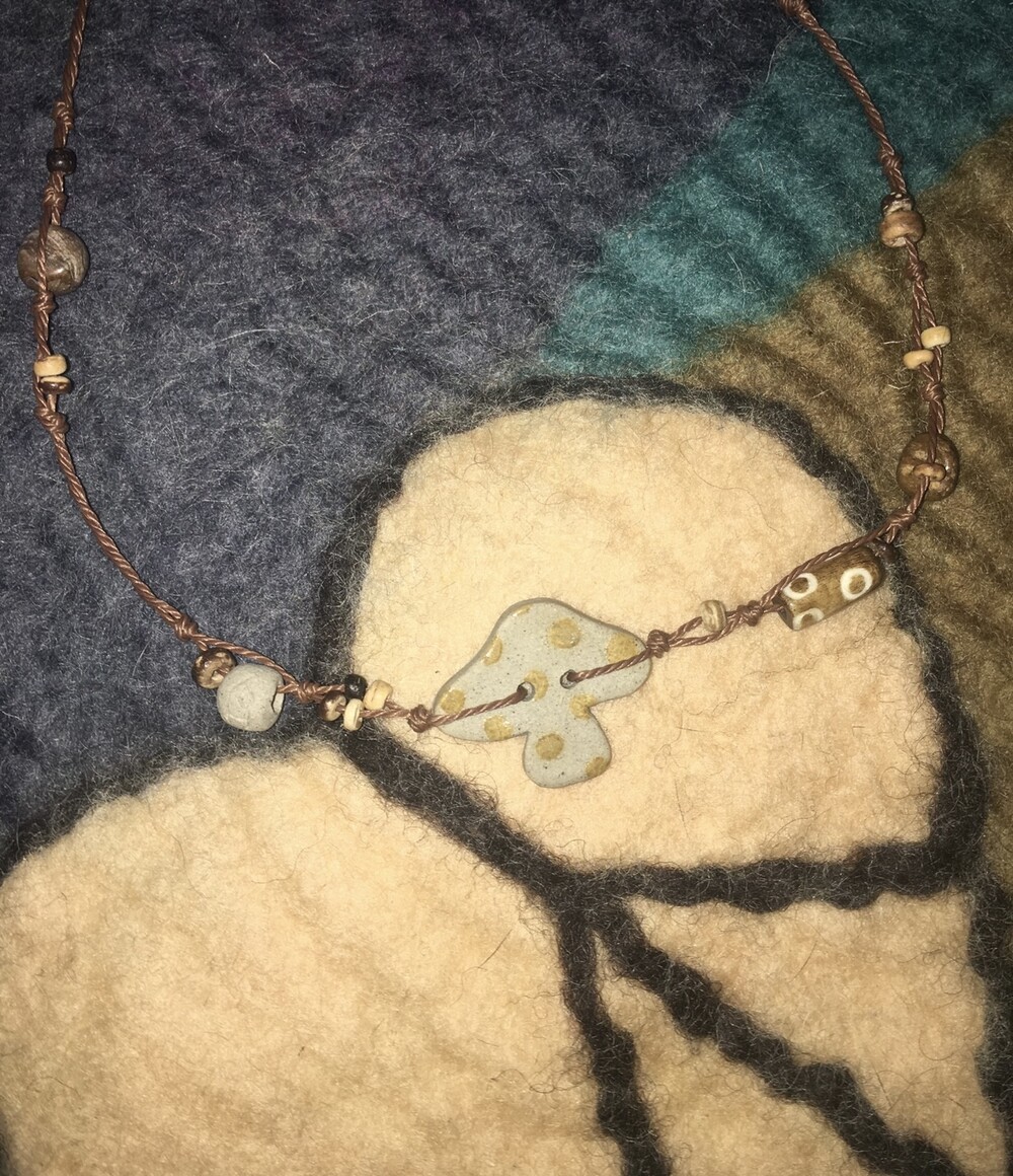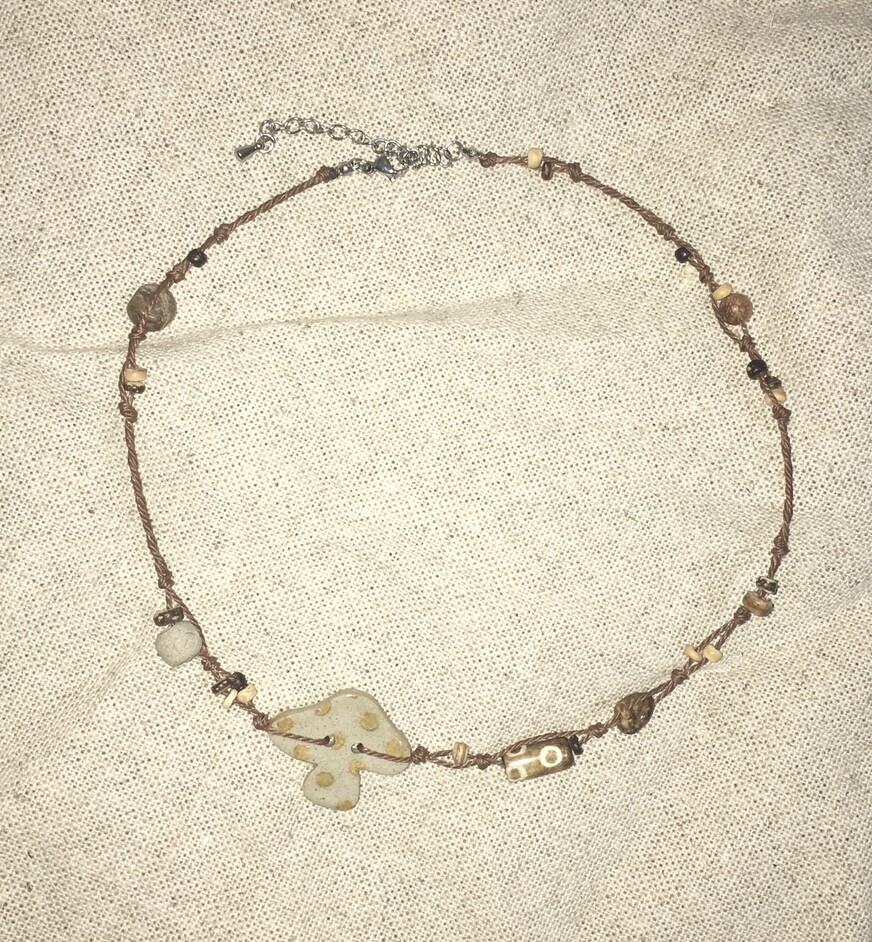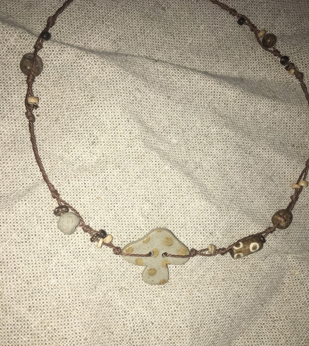 흙 본연의 색과 질감을 살려 빚은 청자토 버섯 펜던트가 중심이 되는 목걸이예요.・. 𓋼𓍊