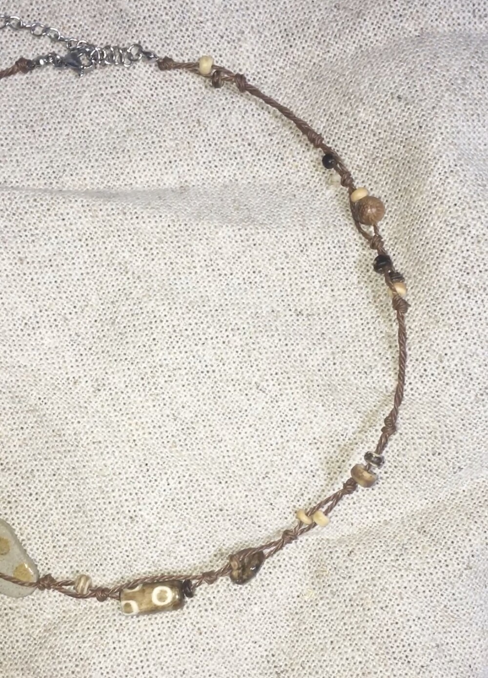 버팔로본, 우드, 세라믹 등의 다양한 질감의 비즈들이 함께 엮여 빈티지하고 따뜻한 분위기를 완성해요