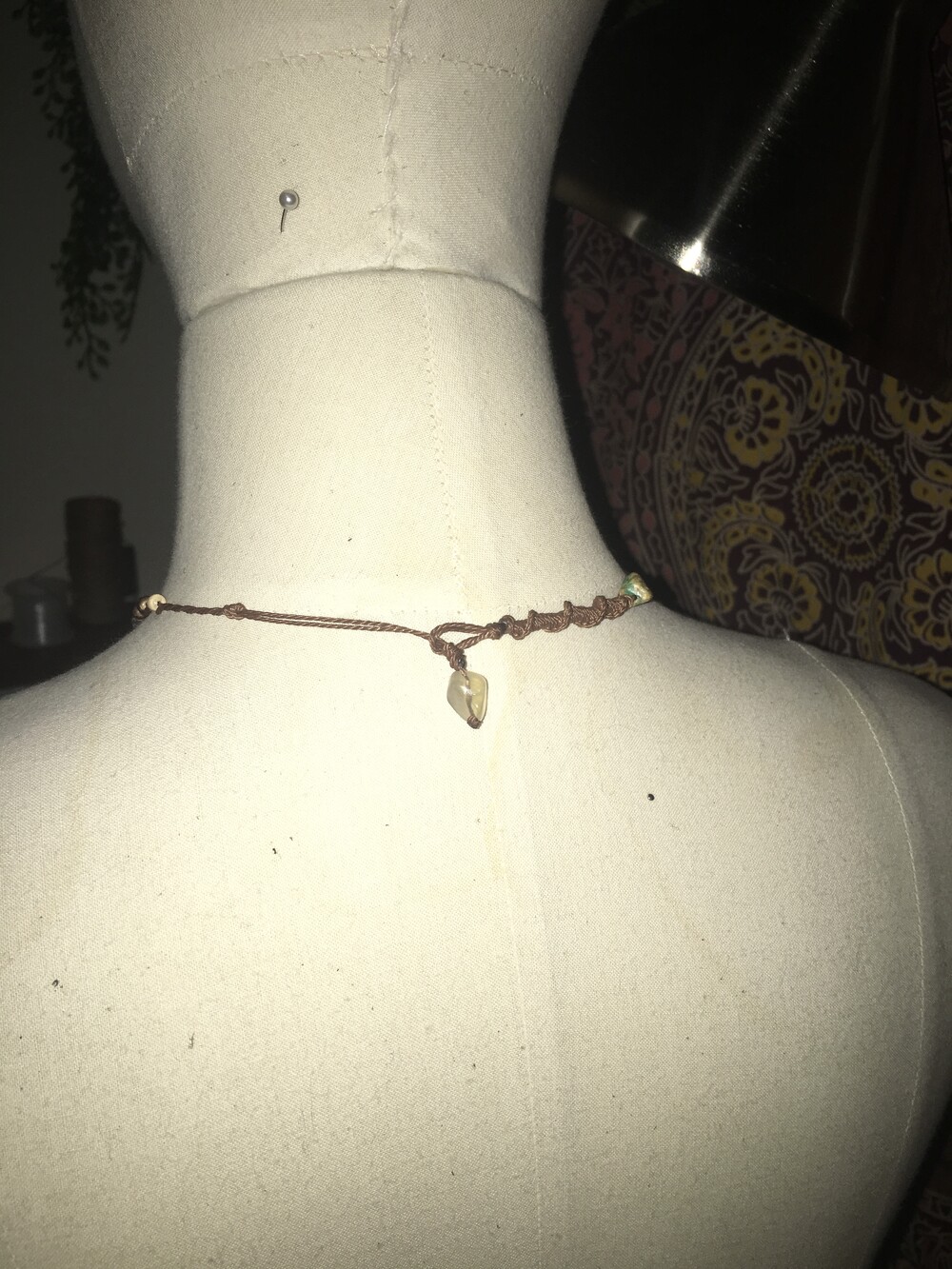 피스 펜던트는 흙의 질감을 살려 구워낸 뒤,실과 작은 스톤으로 감싸 마무리했어요.
