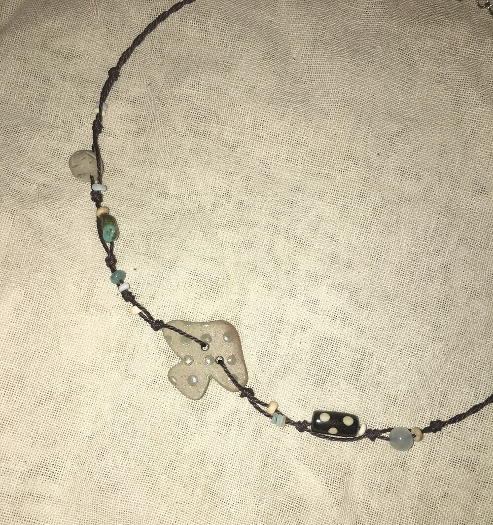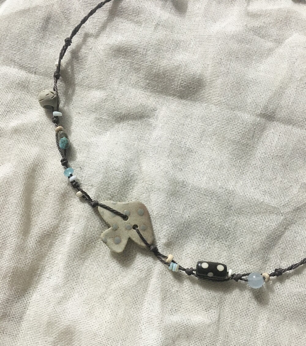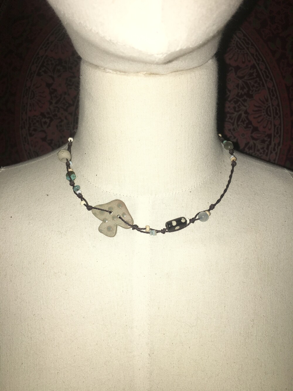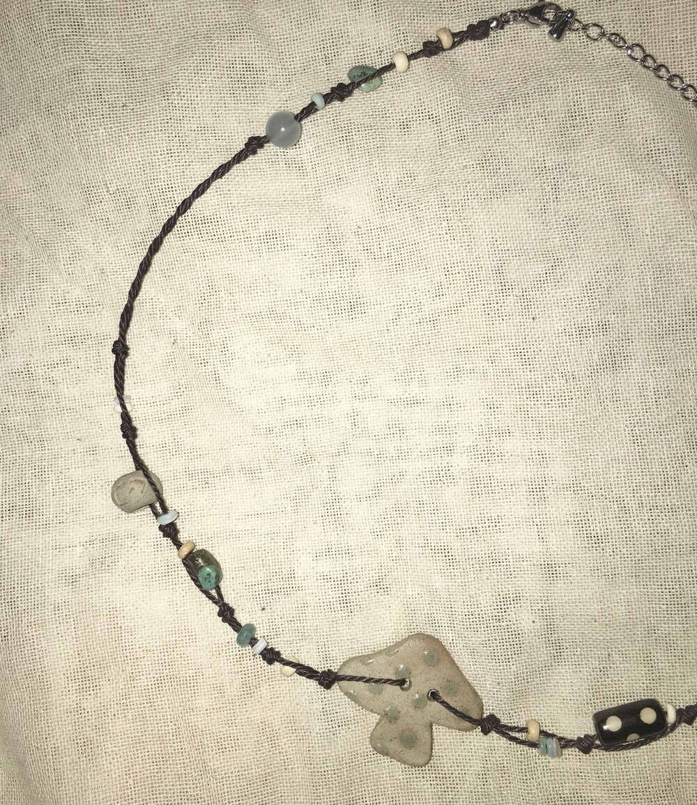 흙 본연의 색과 질감을 살려 빚은 청자토 버섯 펜던트가 중심이 되는 목걸이예요.𓋼𓍊