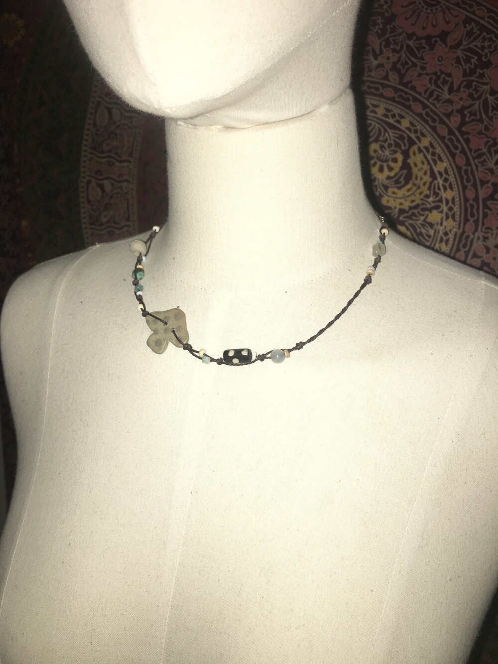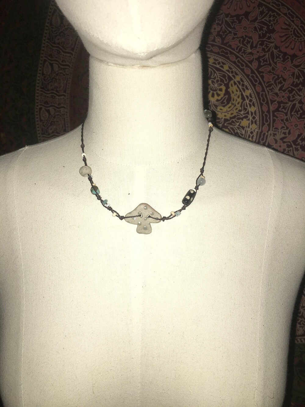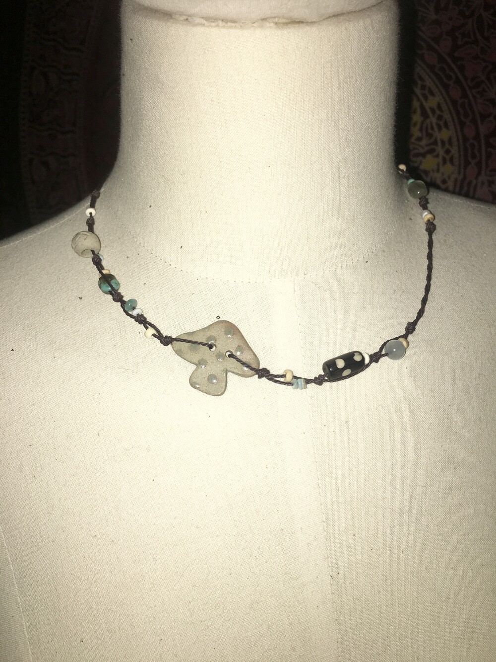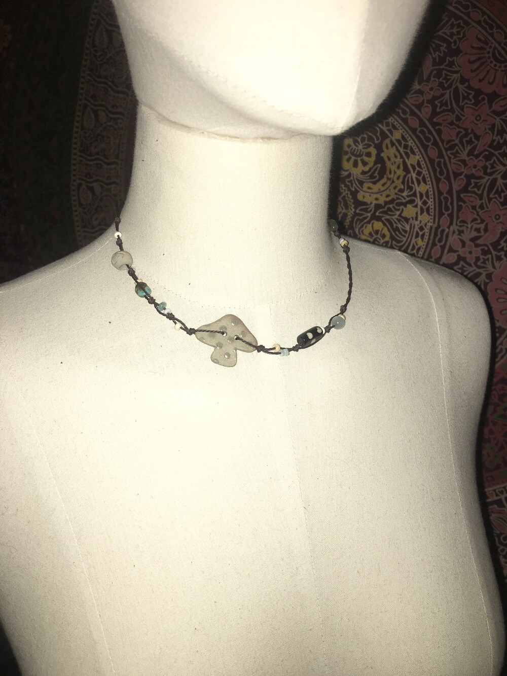 흙 본연의 색과 질감을 살려 빚은 청자토 버섯 펜던트가 중심이 되는 목걸이예요.𓋼𓍊