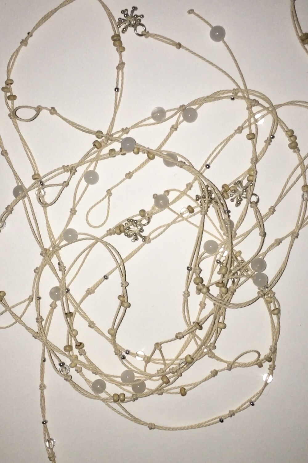 살짝 흘러내리듯 떨어지는 드롭 구조에,은은하게 땋아낸 실끈 위로 투명하고 맑은 구슬들이톡톡.•..