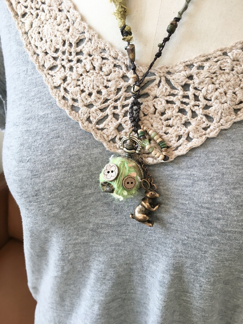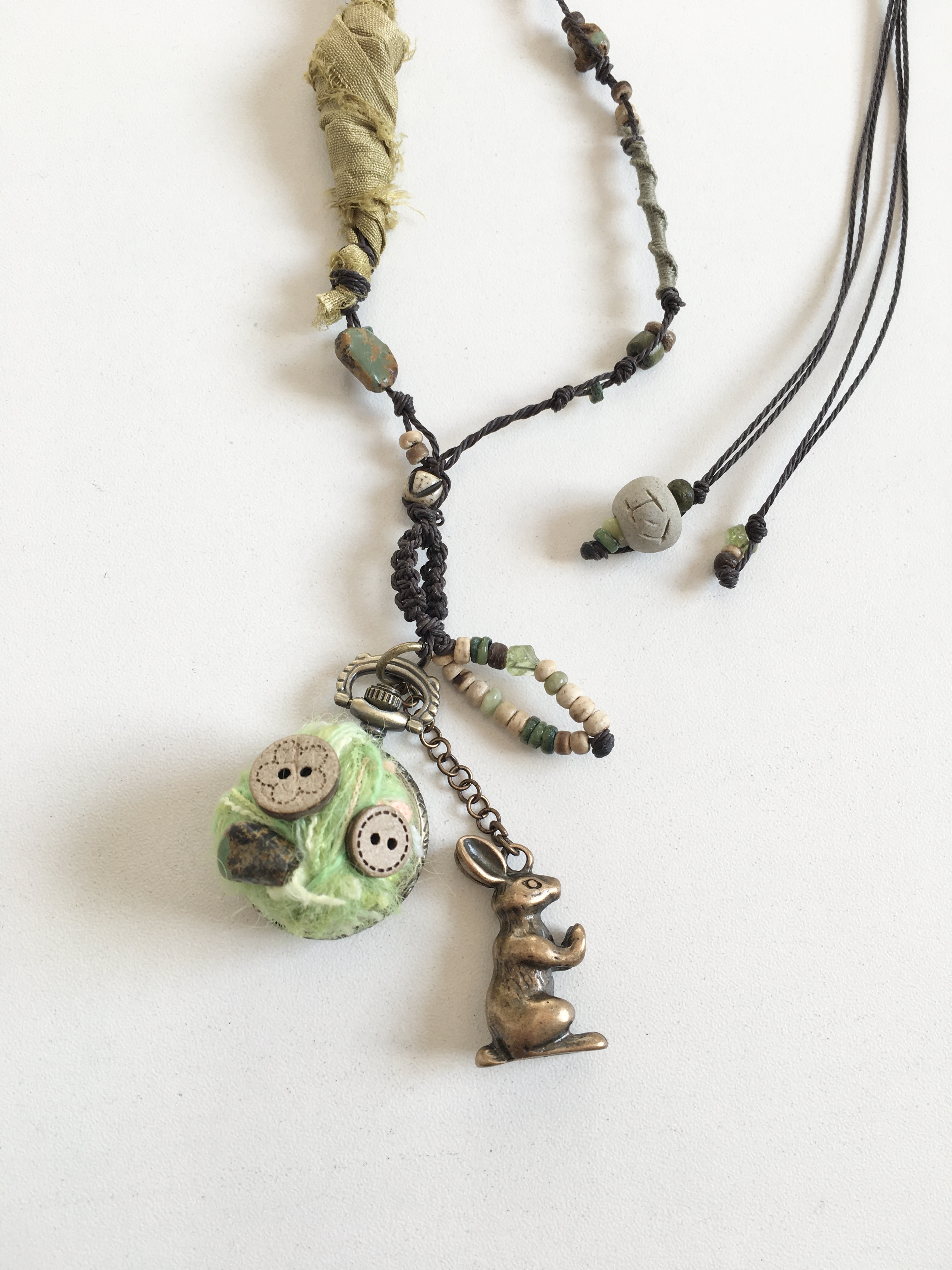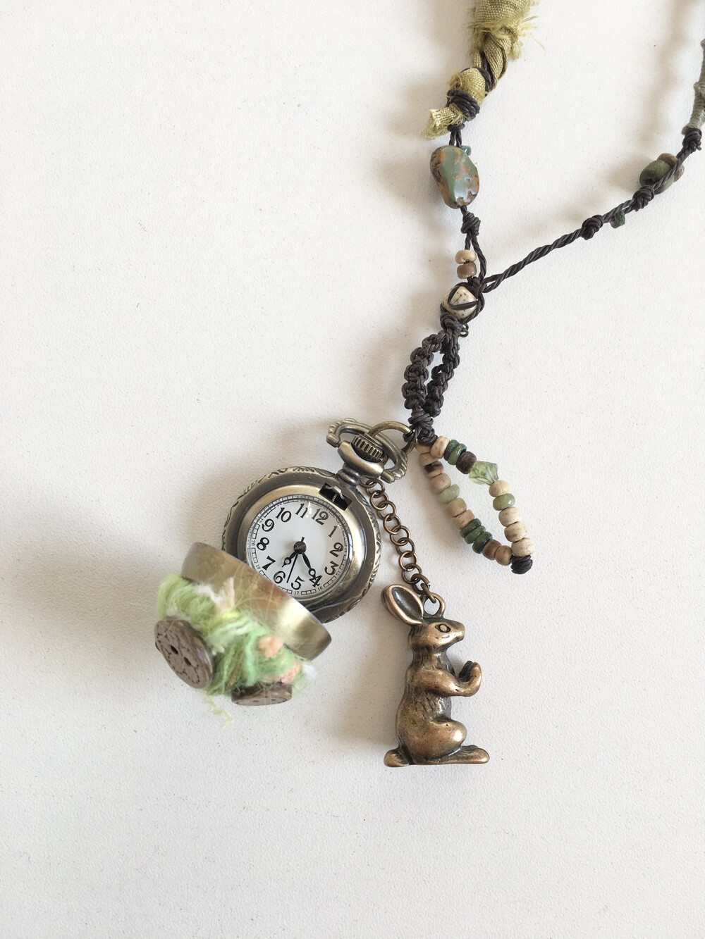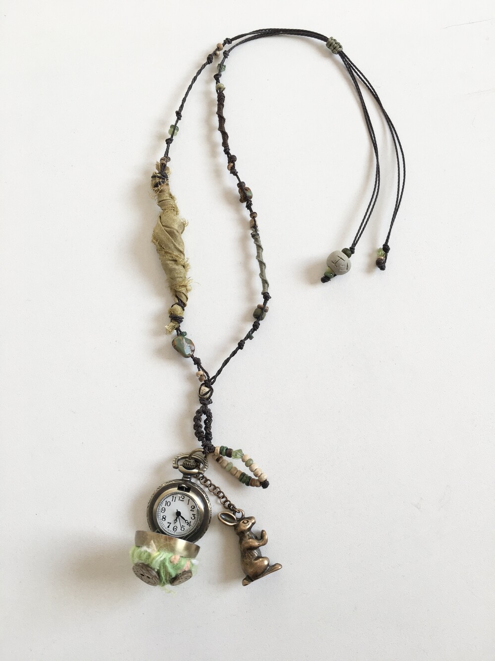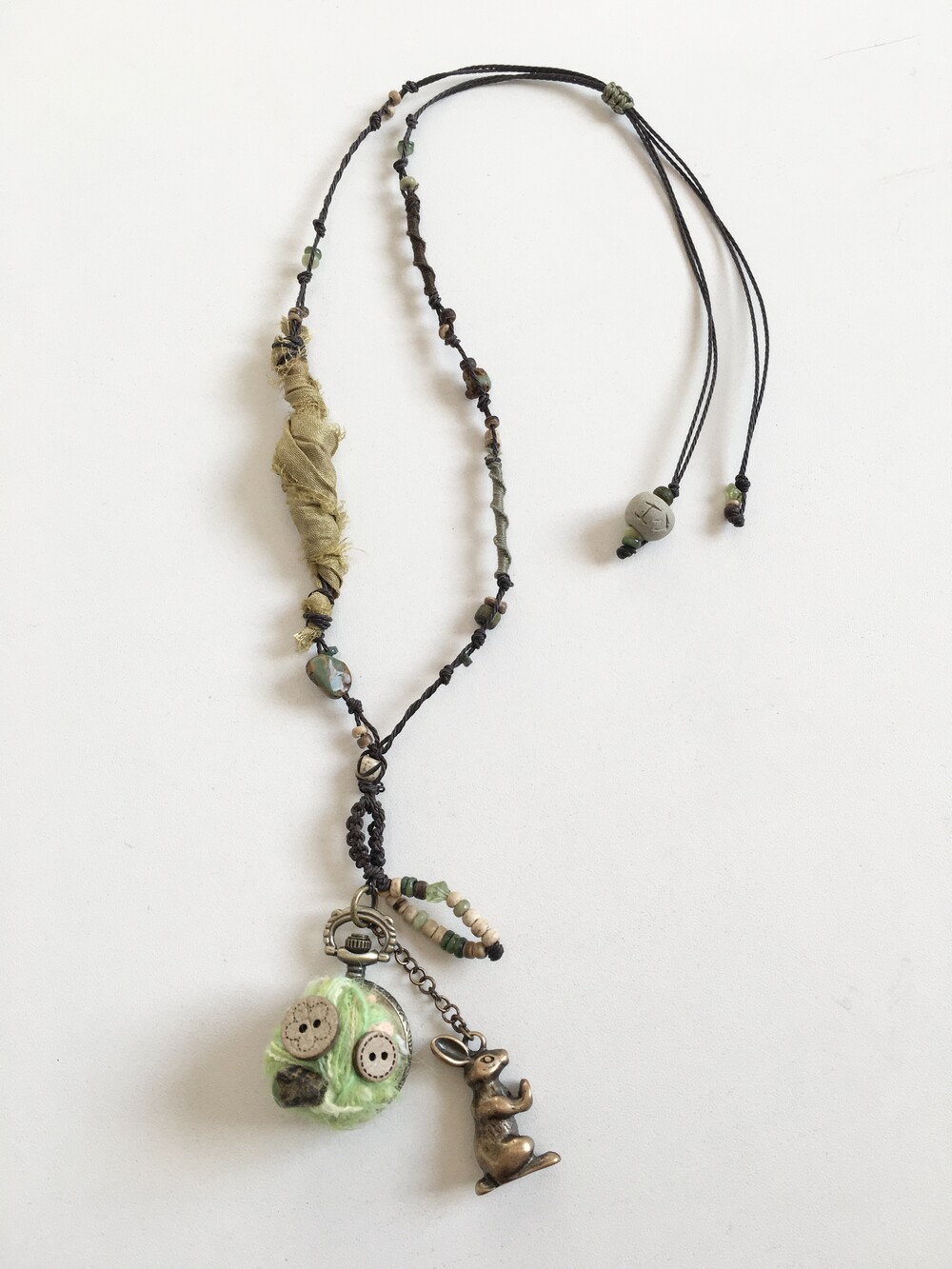 숲속에서 시간을 기다리고 있는 작은 토끼를 담은 목걸이에요.•.