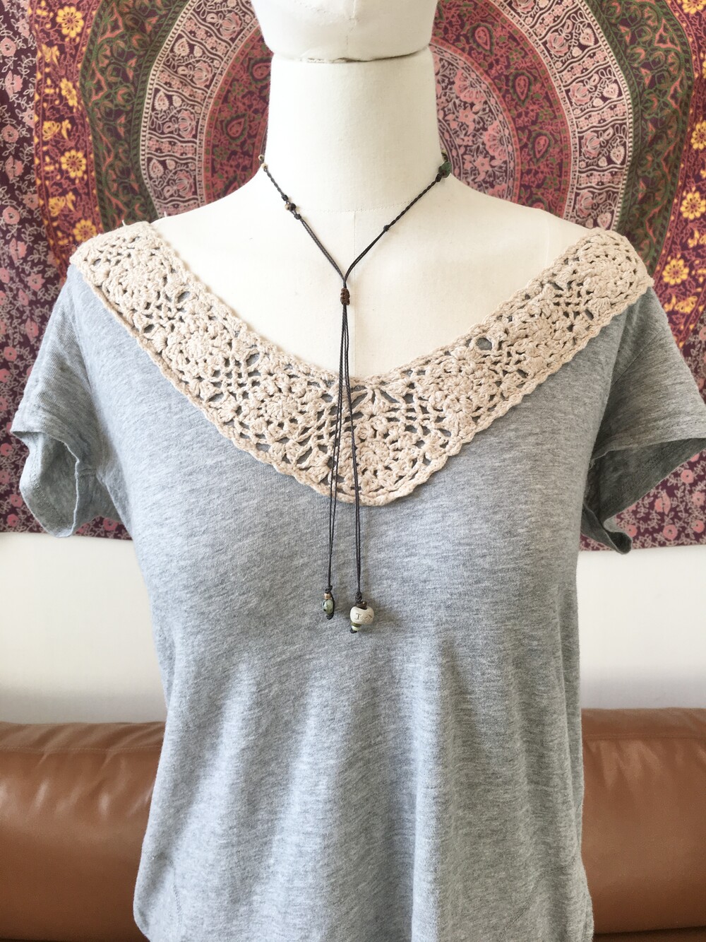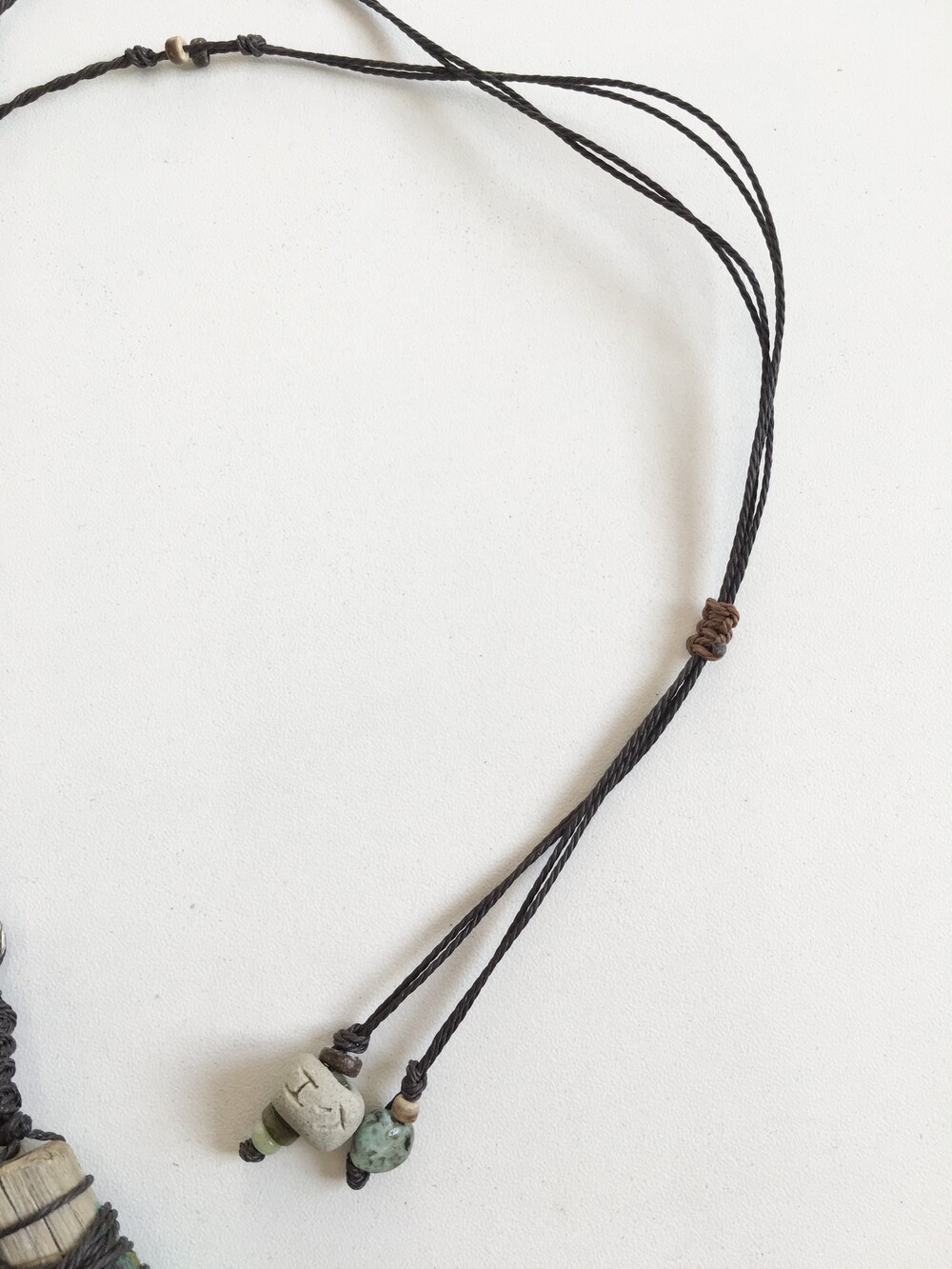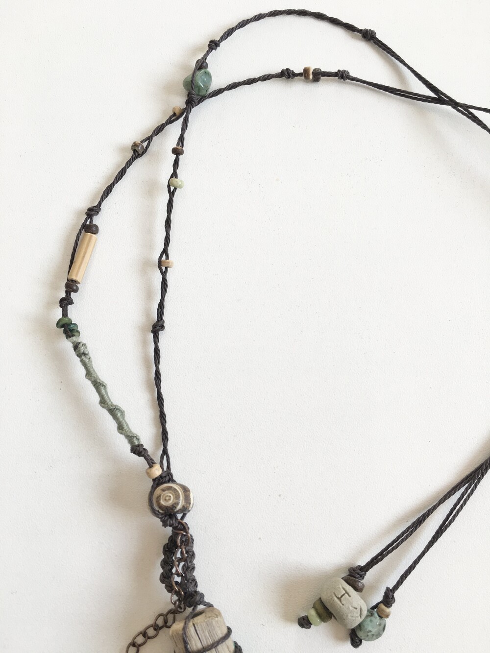 목걸이 라인에는 우드 비즈와 천연 비즈들을 함께 엮어 내추럴하고 잔잔한 숲의 분위기로 완성했습니다.•.