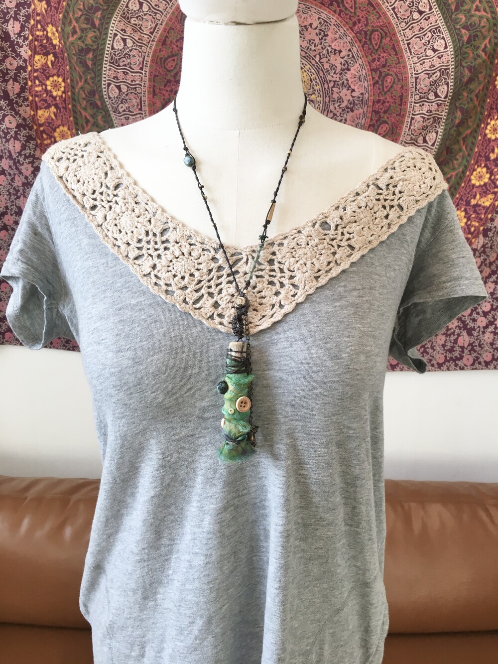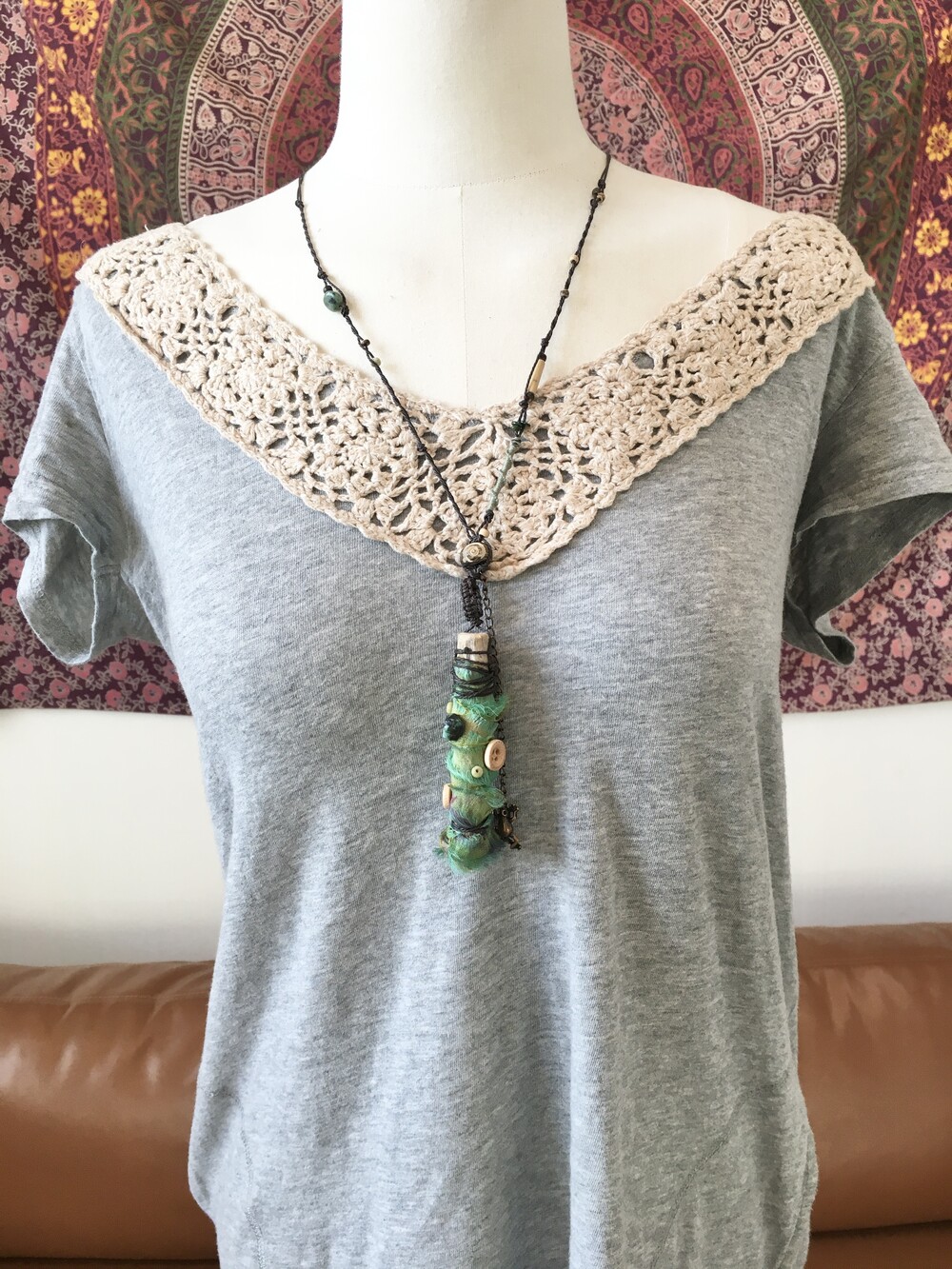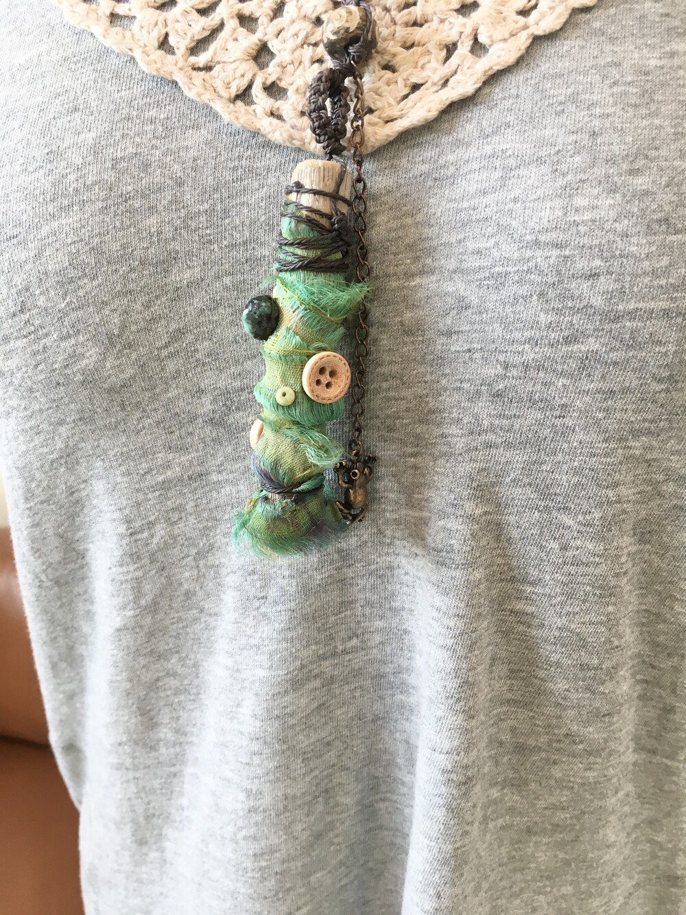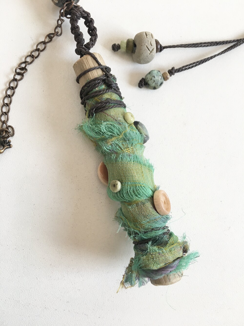 작은 개구리가 살고 있을 것 같은 숲의 한 조각을 담아 만든 목걸이에요.•.