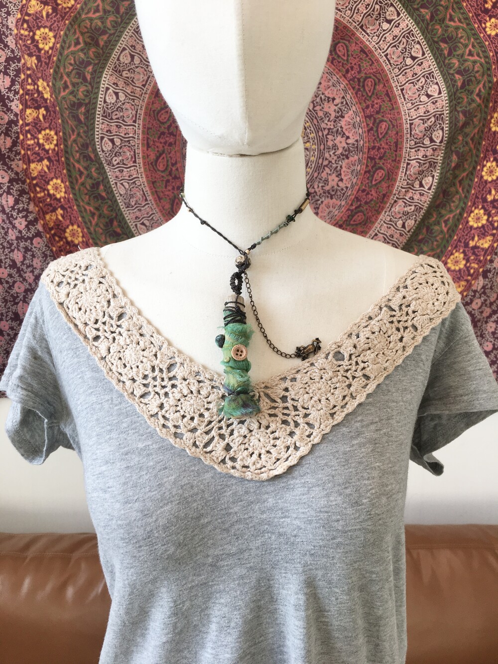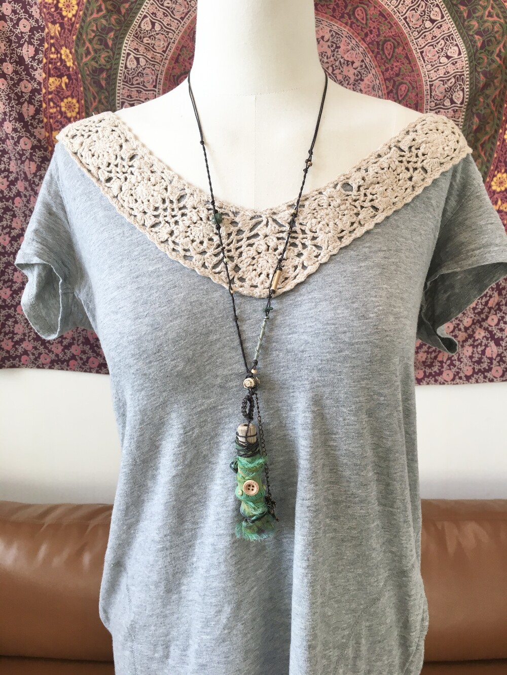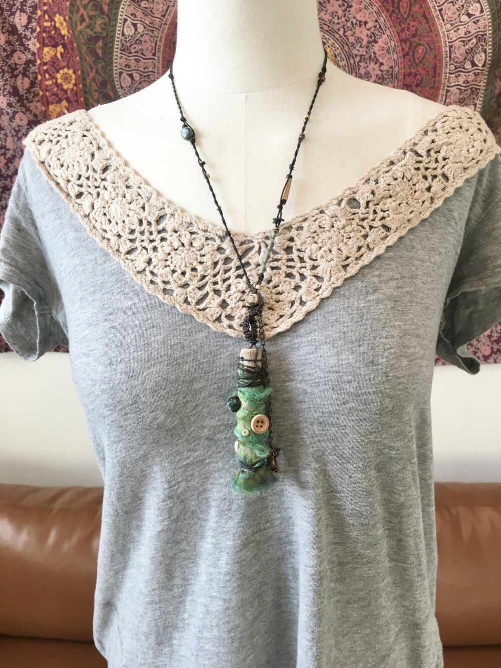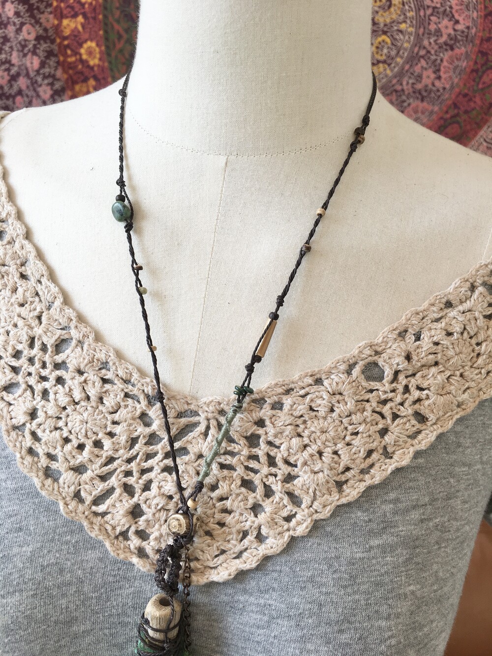 작은 개구리가 살고 있을 것 같은 숲의 한 조각을 담아 만든 목걸이에요.•.