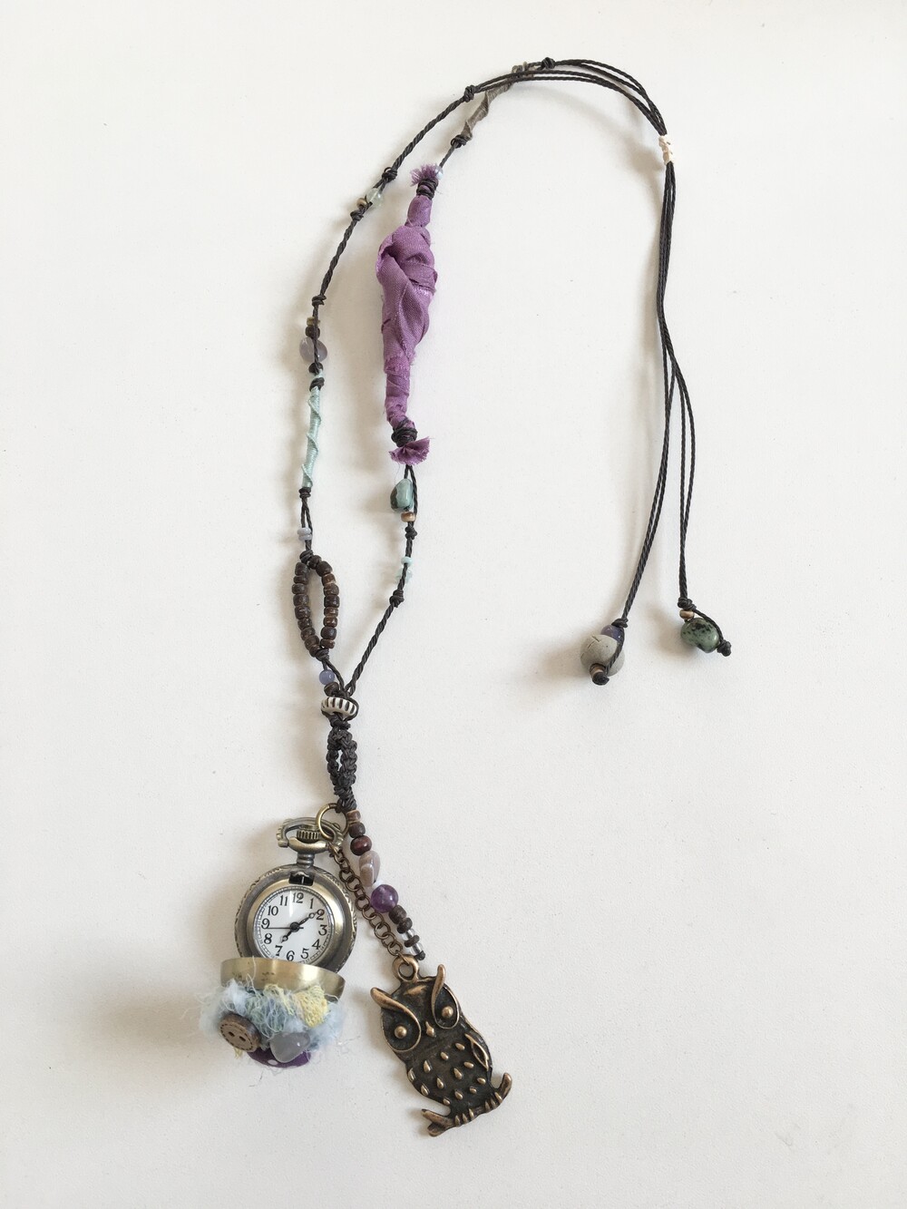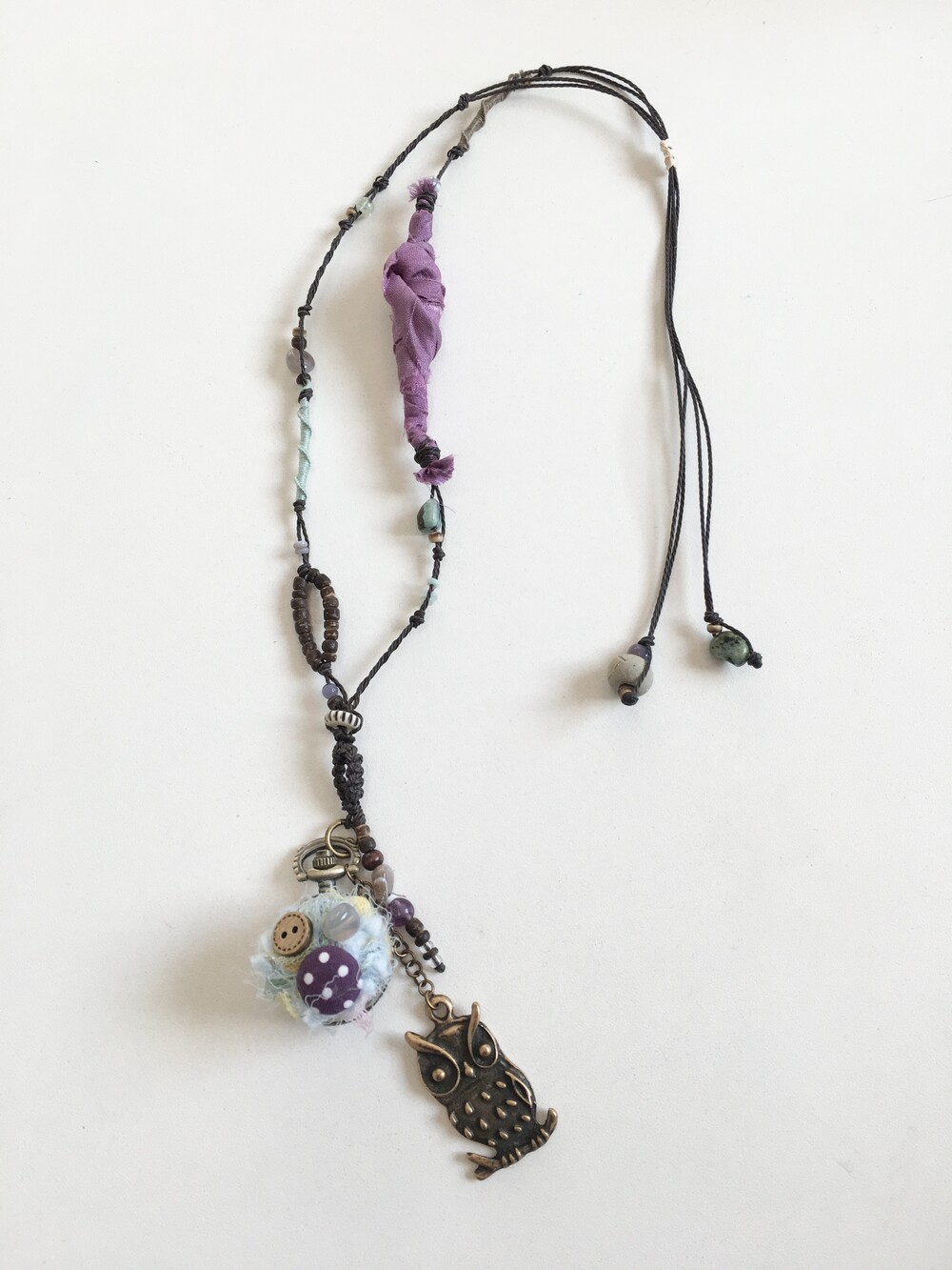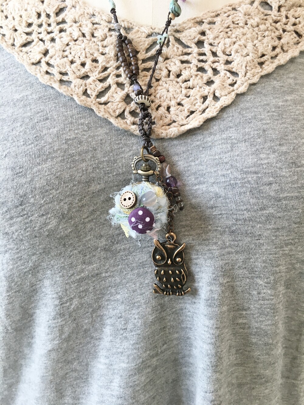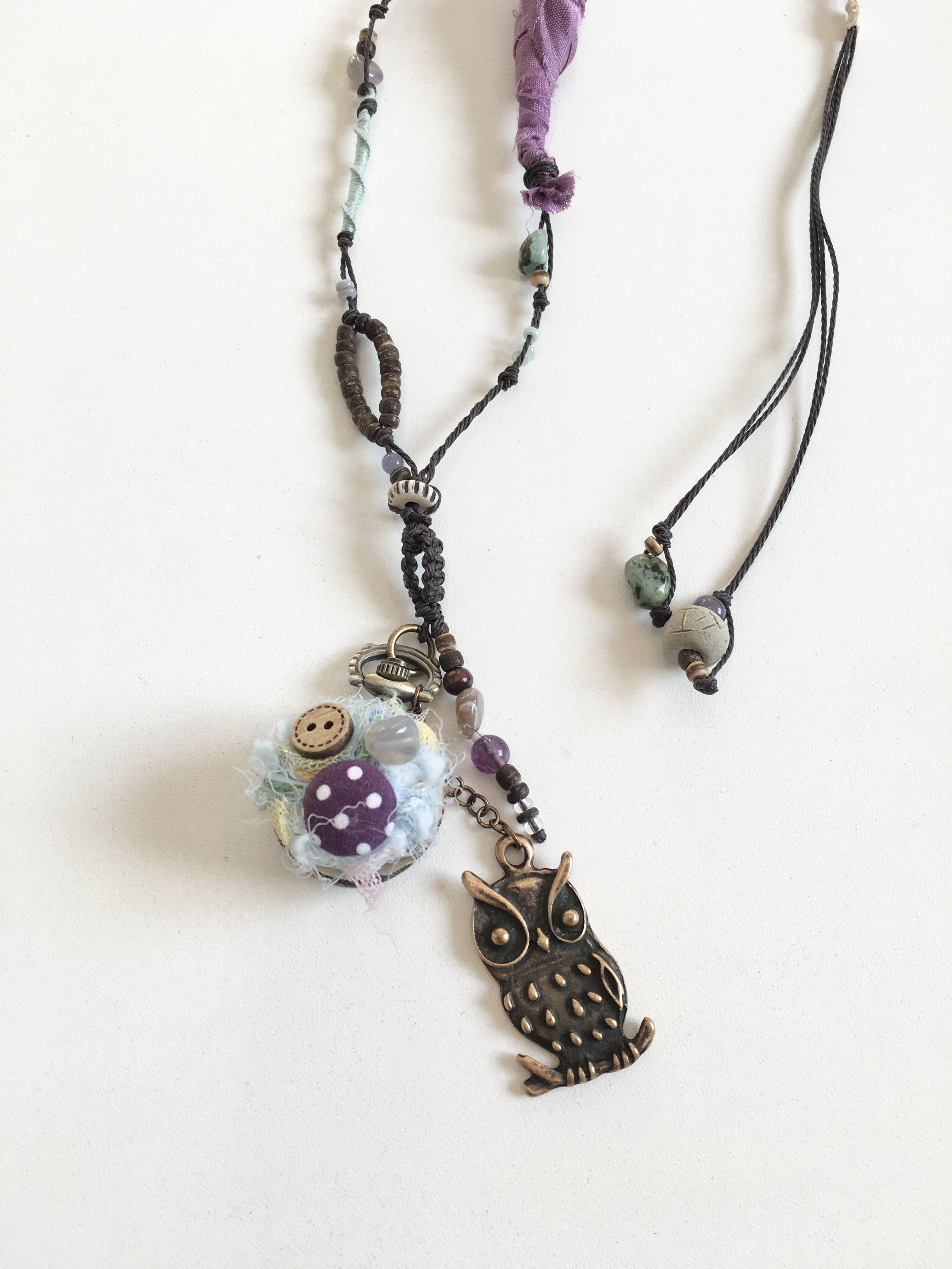조용한 숲속 밤, 시간을 지키고 있는 작은 부엉이를 닮은 목걸이에요.•.