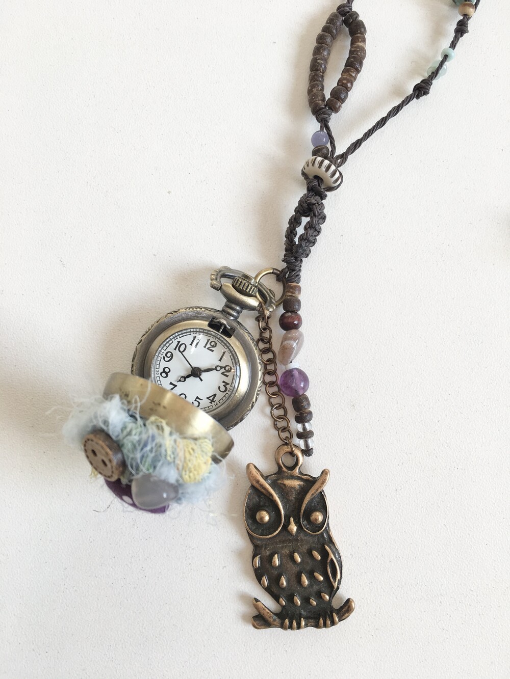 moonlit owl clock necklace