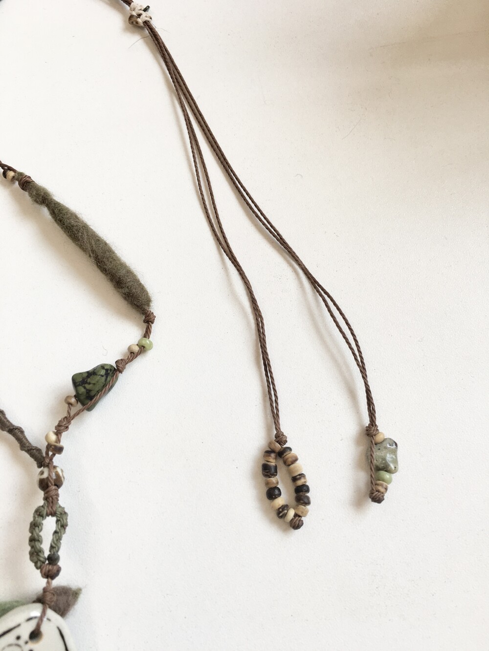 펜던트 옆으로는 양모를 웻펠팅 기법으로 가공해 만든 오브제를 더해