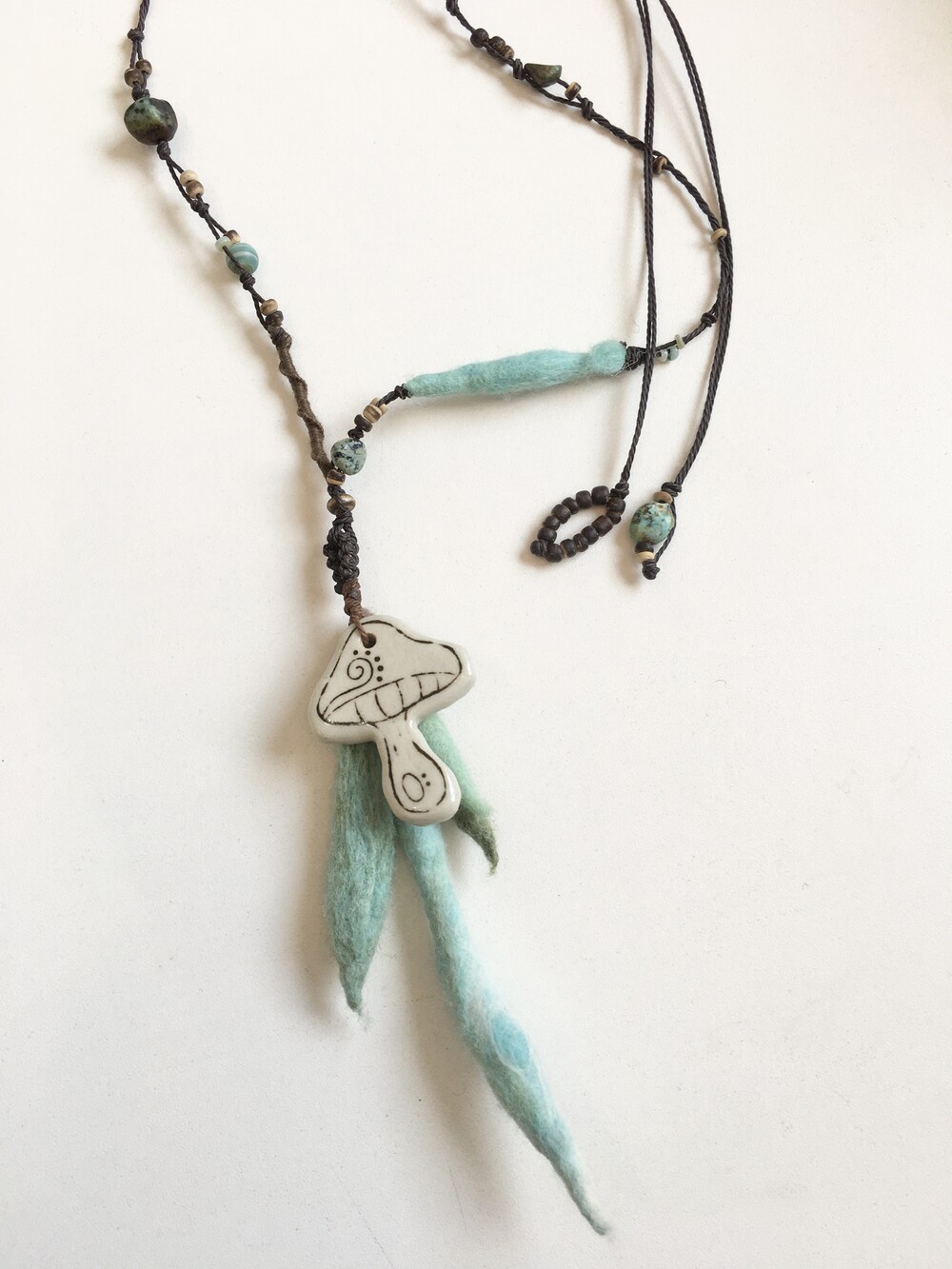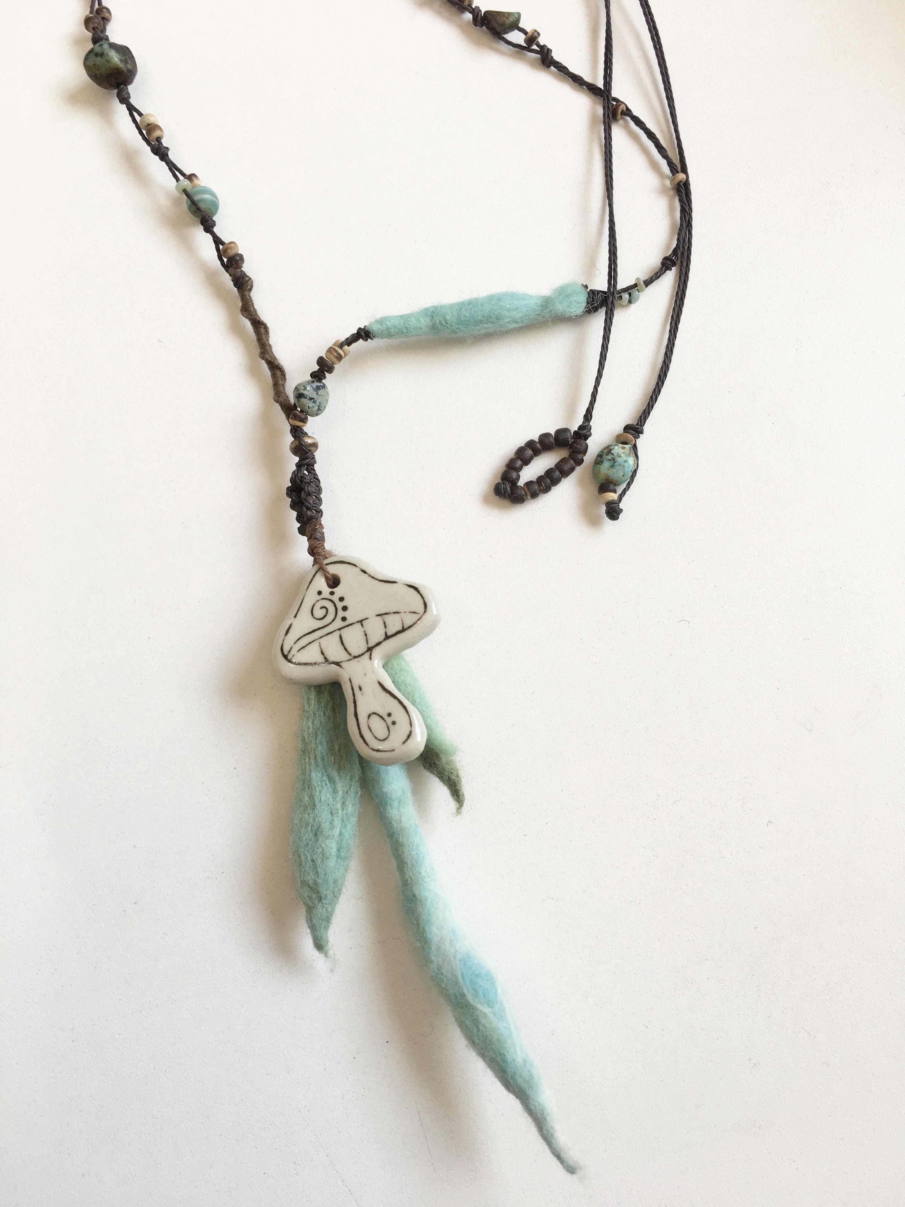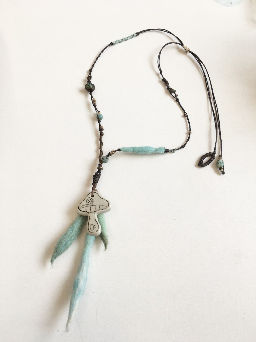 펜던트 옆으로는 양모를 웻펠팅 기법으로 가공해 만든 오브제를 더해