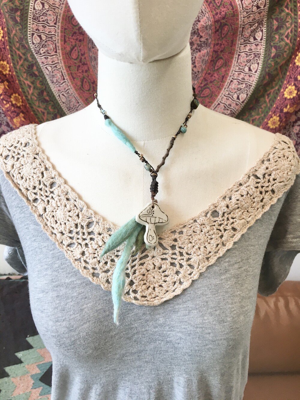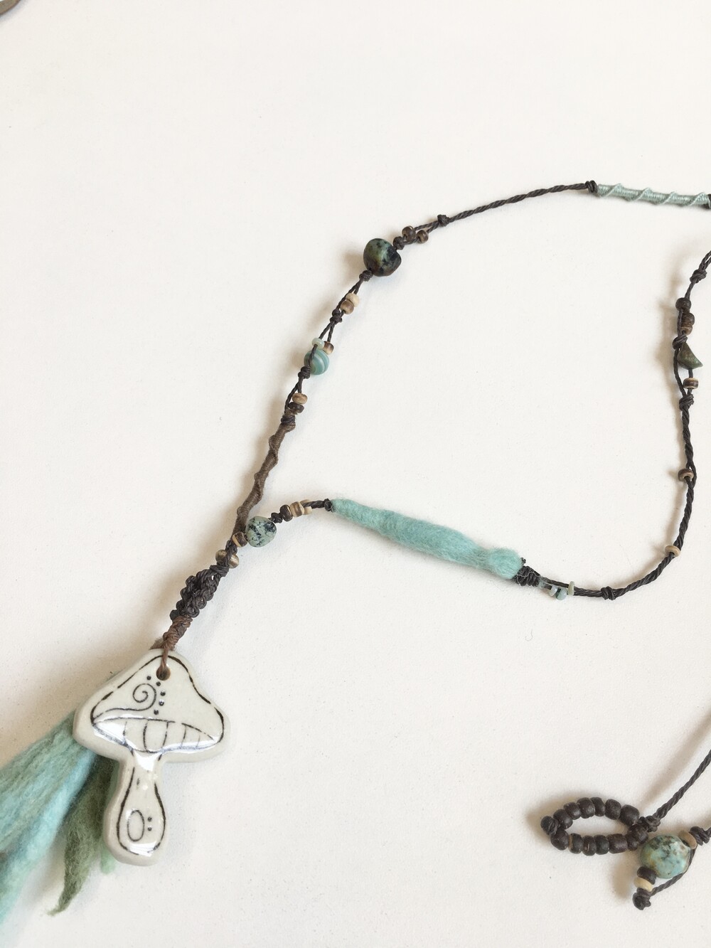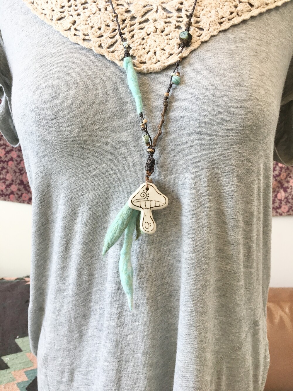 펜던트 옆으로는 양모를 웻펠팅 기법으로 가공해 만든 오브제를 더해