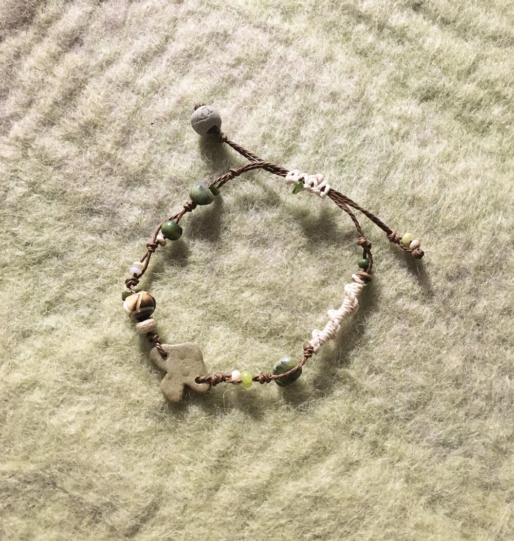 따뜻한 브라운 로프 위에 은근하게 자리 잡은 초록빛 덕분에 착용했을 때