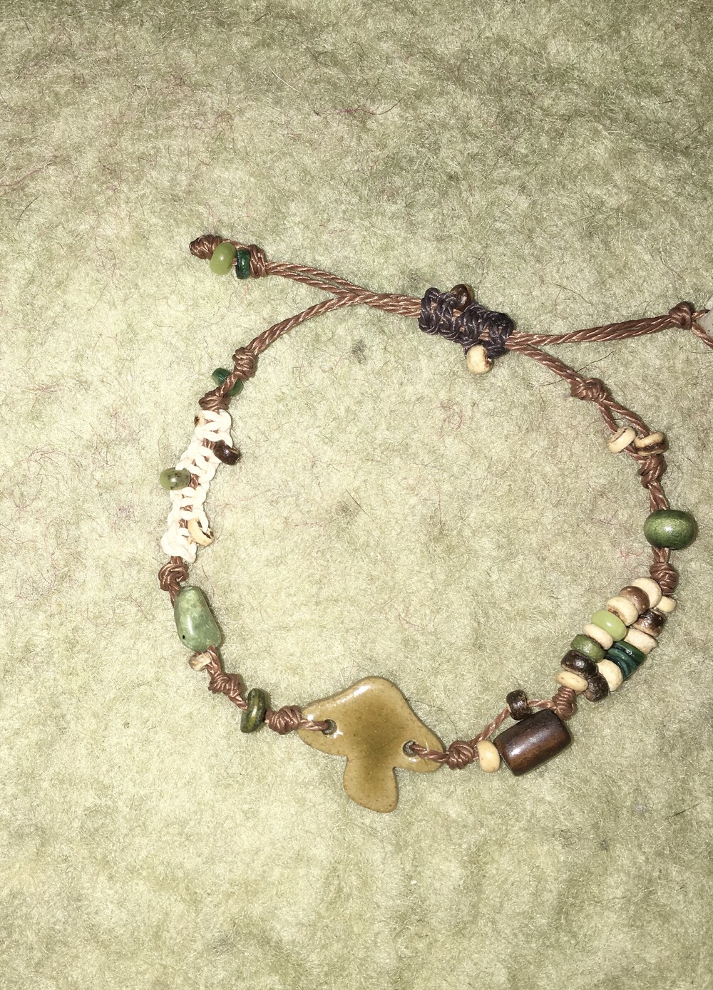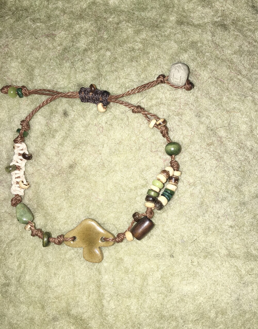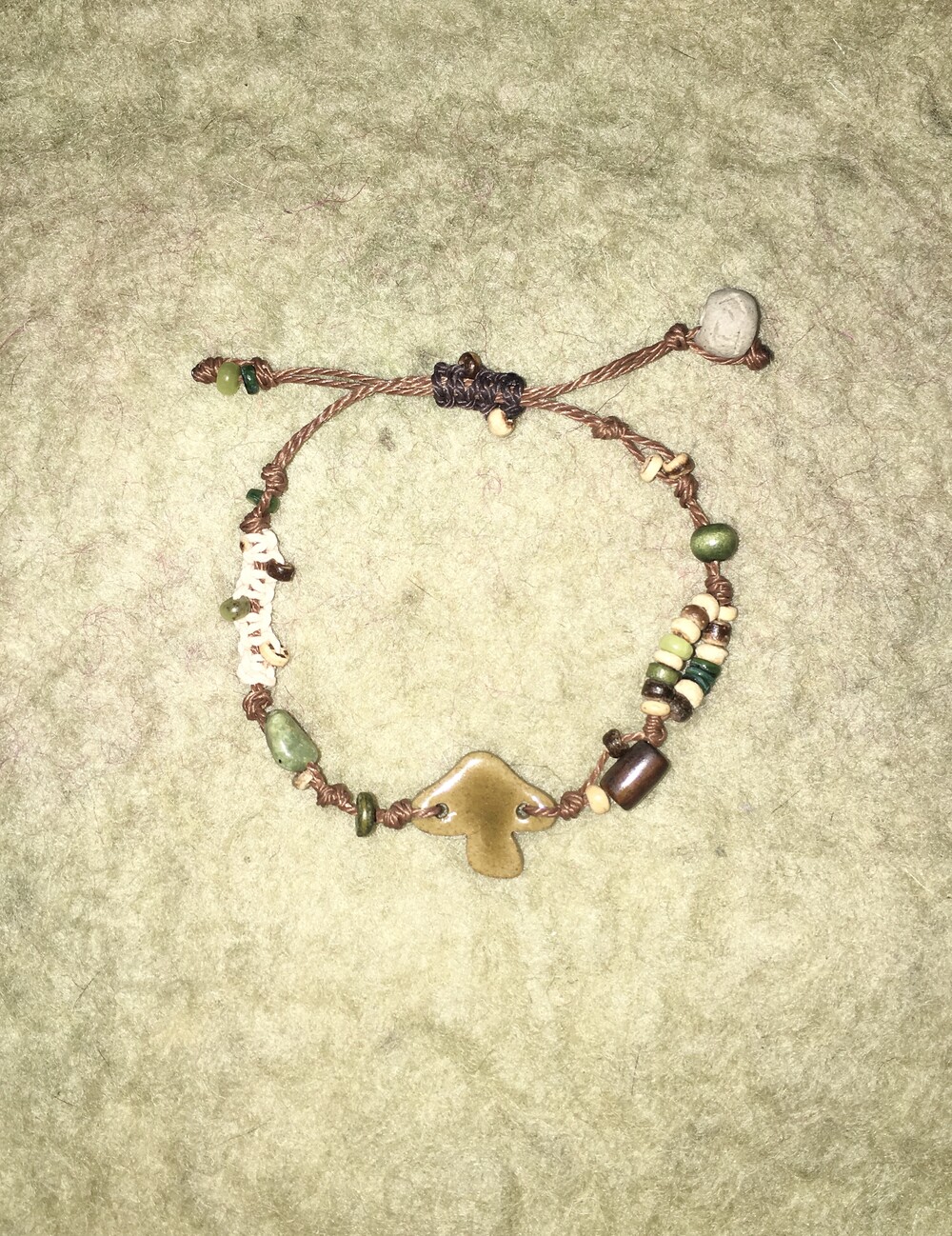 청자토 위에 올리브빛의 유약을 발라 구운 작은 버섯 펜던트가 포인트인 브레이슬릿이에요🍄𓂃𓈒𓏸
