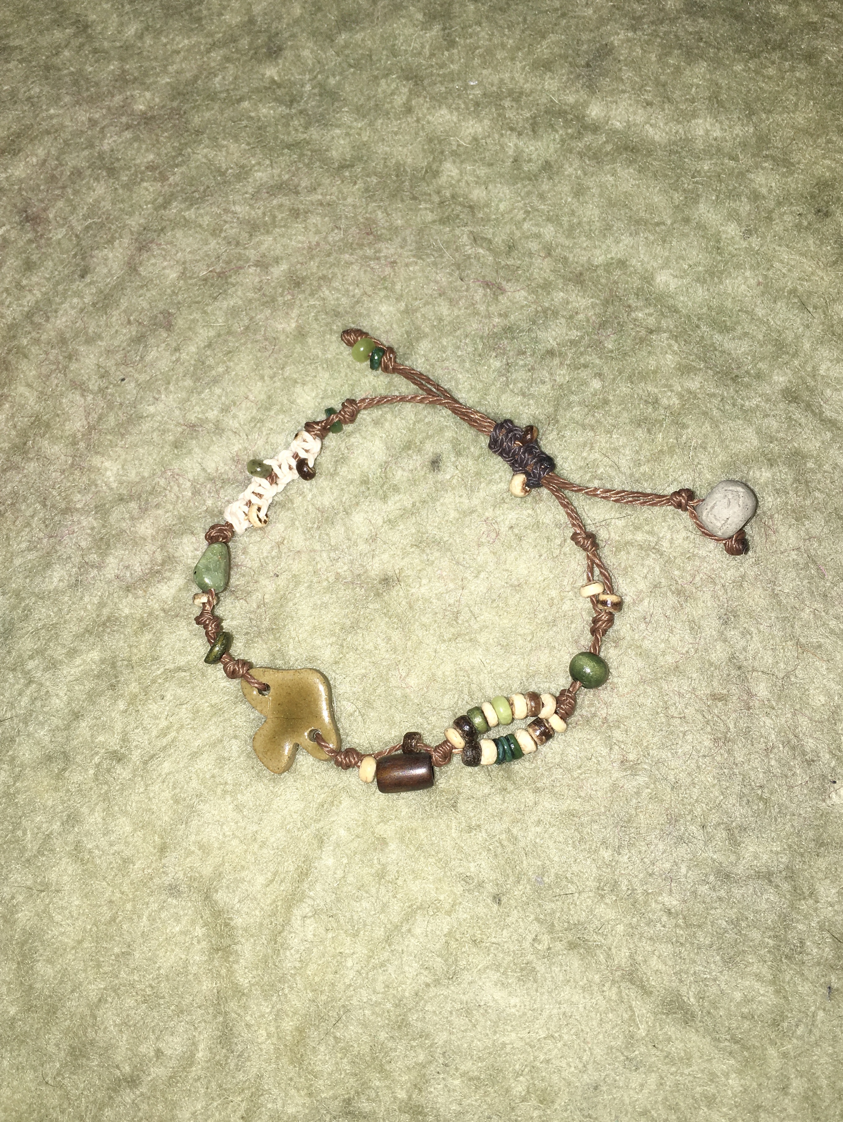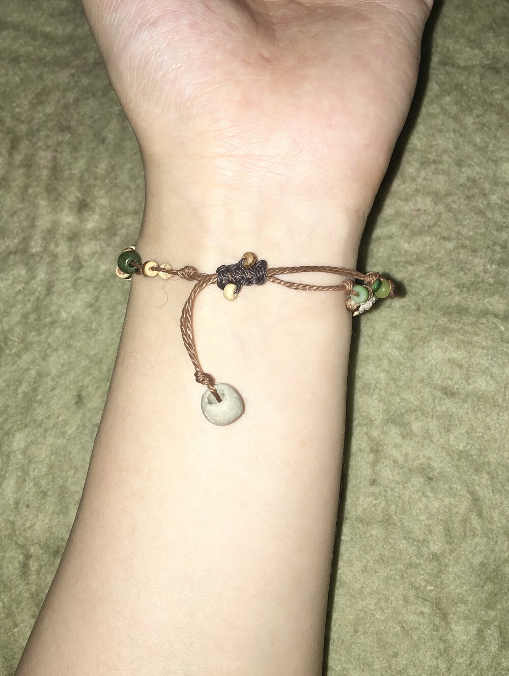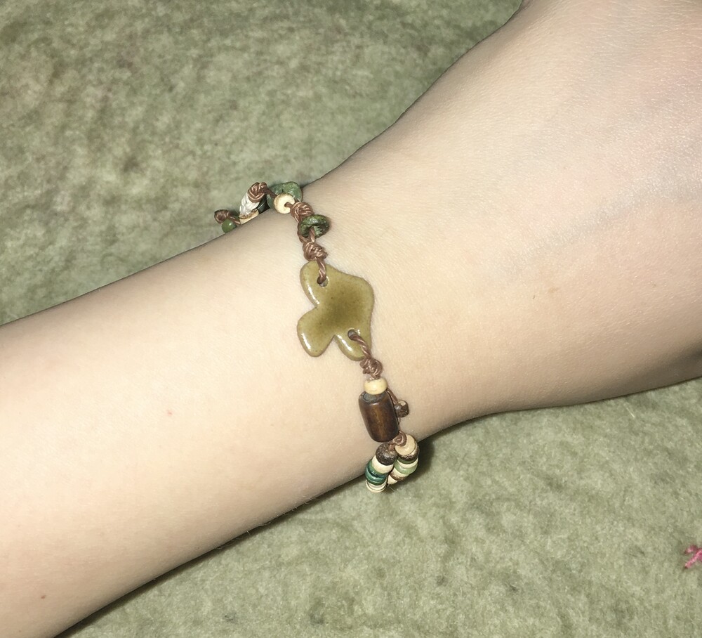 청자토 위에 올리브빛의 유약을 발라 구운 작은 버섯 펜던트가 포인트인 브레이슬릿이에요🍄𓂃𓈒𓏸