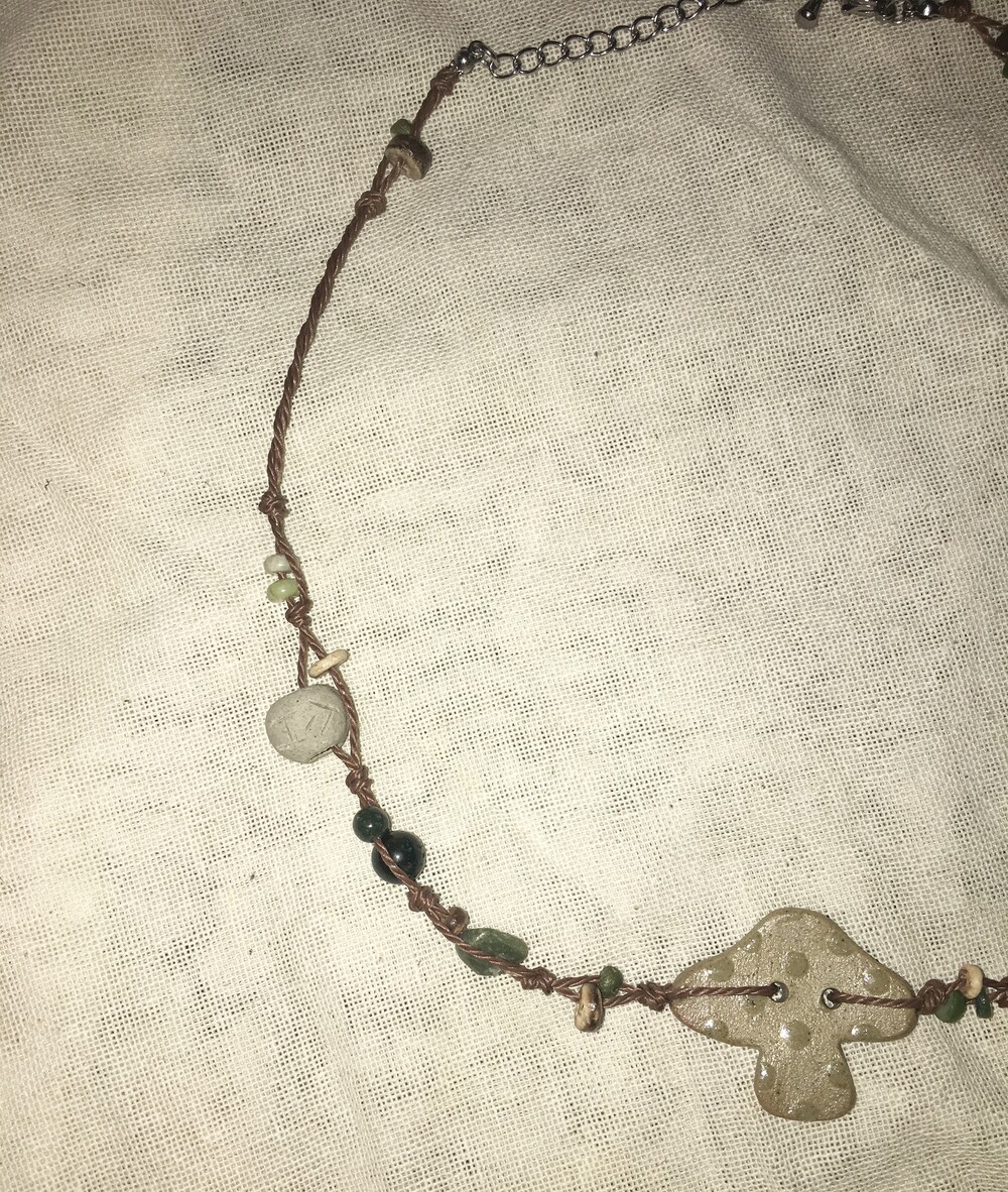 마치 숲속에서 이슬을 머금은 작은 버섯을 발견한 듯한 느낌을 주는 목걸이예요°·̊‧̍̊