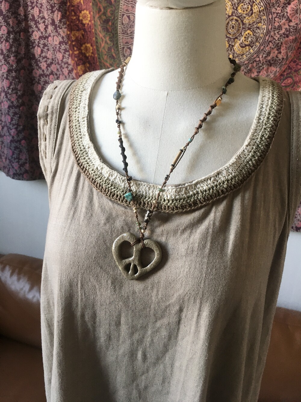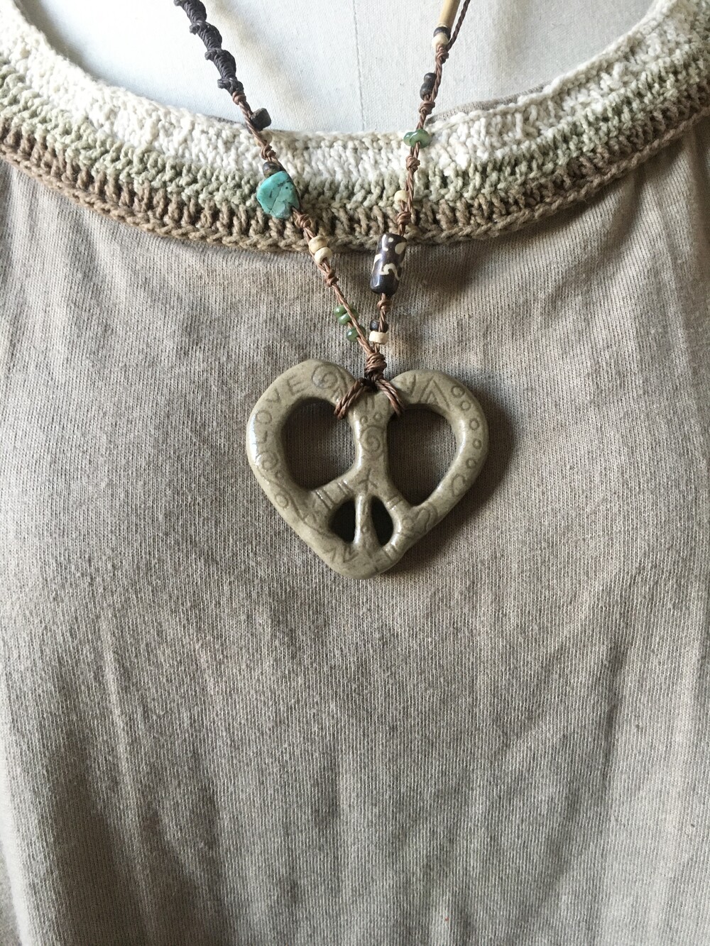 worn peace heart necklace