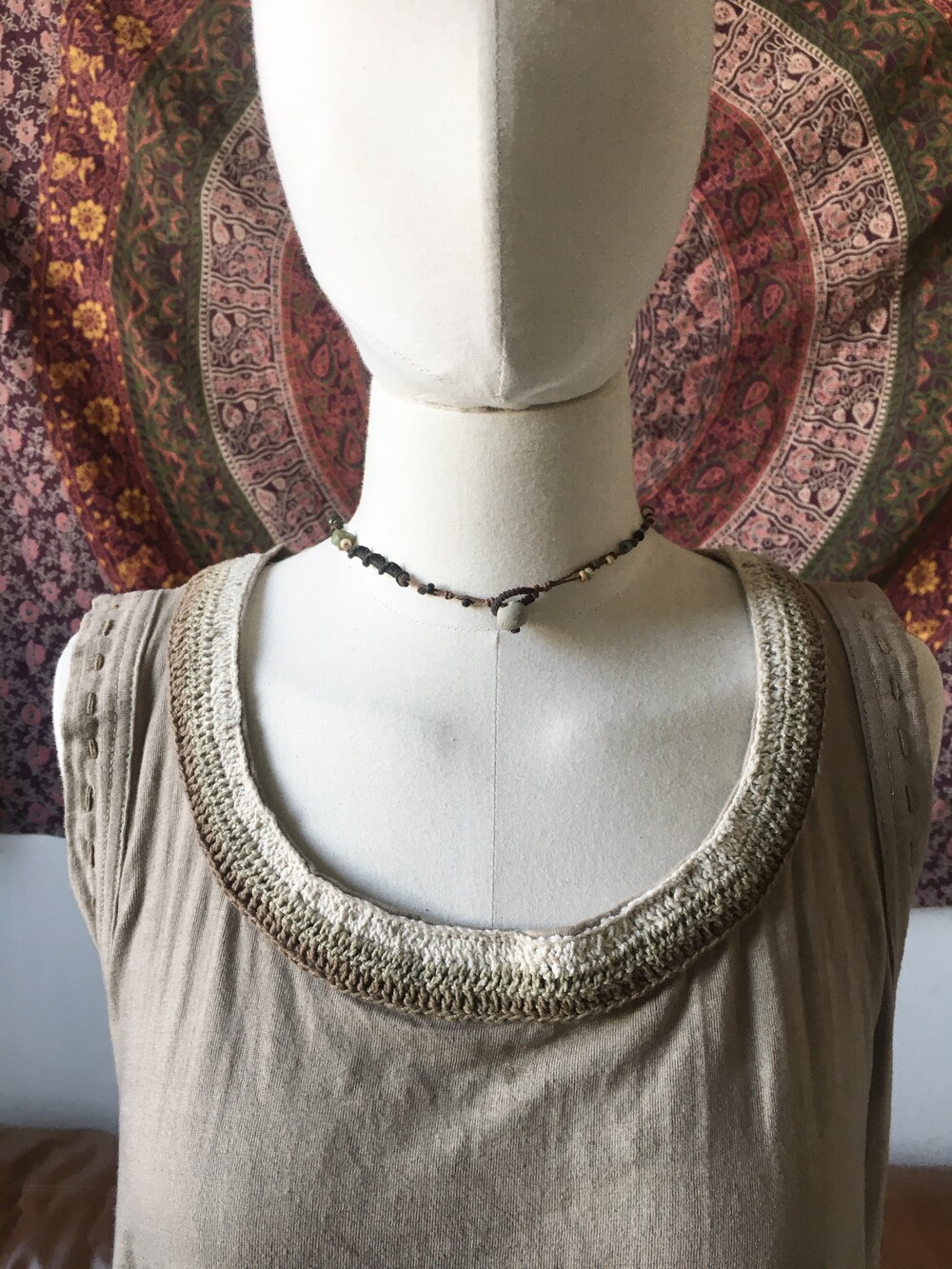 끈은 브라운 톤의 실로매듭을 반복해서 엮어냈고,